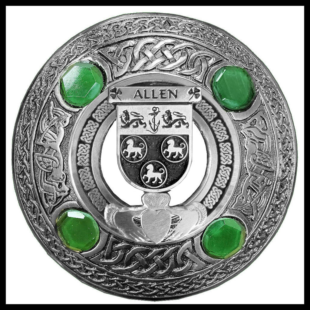 Allen Irish Claddagh Coat of Arms Plaid brooch ~ Emerald stones