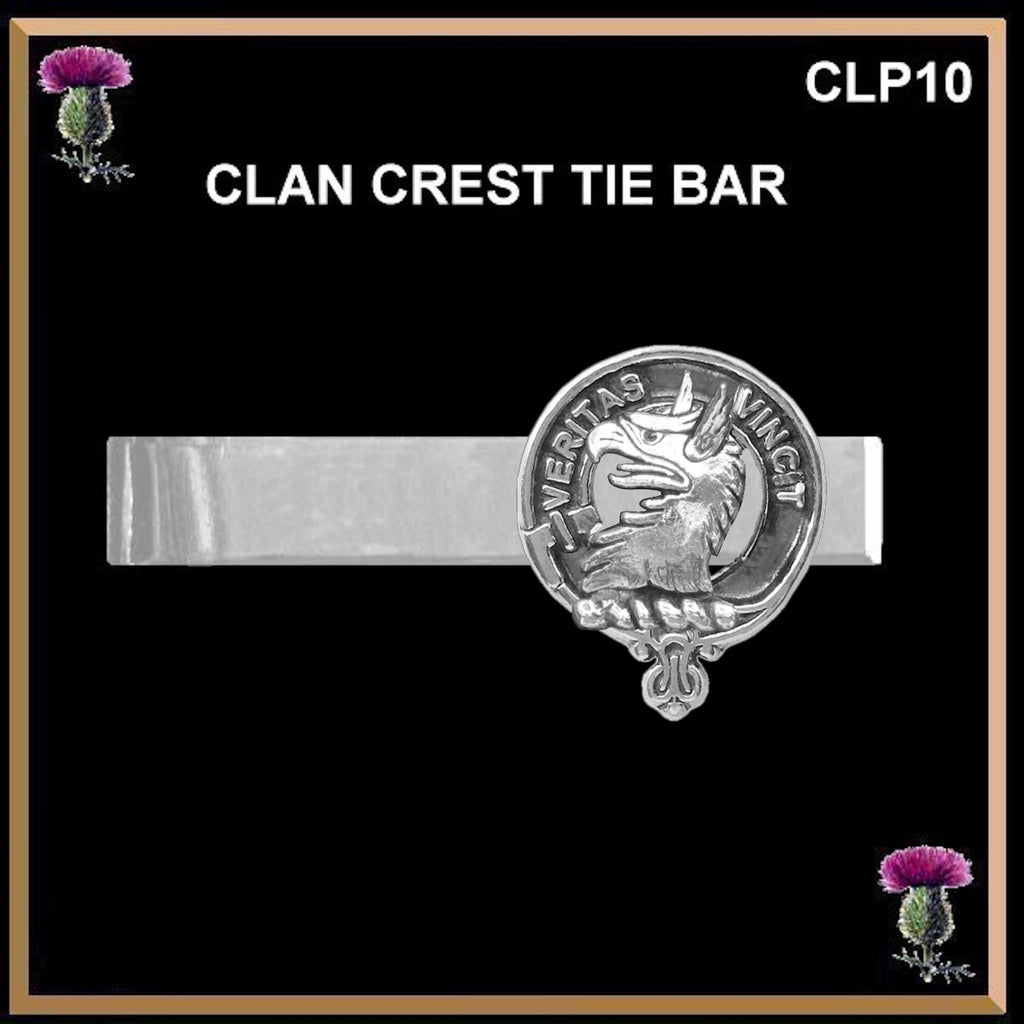 Your proud Scottish Clan heritage can be displayed by wearing your beautiful Scottish Clan clip tie bar. Each Clan tie bar is exquisitely handcrafted in high detail in lead free pewter or sterling silver and is mounted on a base metal tie bar. The Clan clip tie bar crest is 19.5 mm.