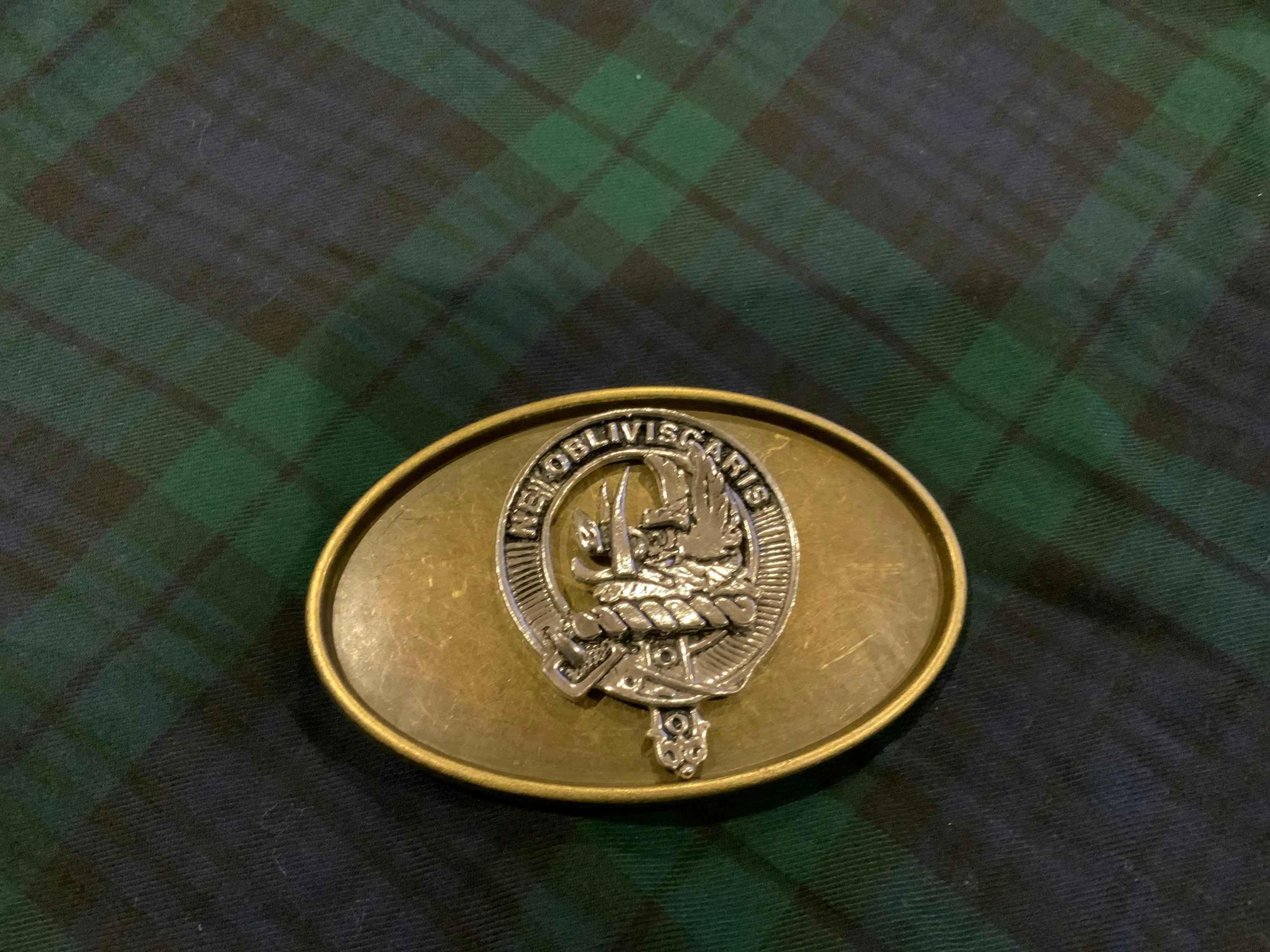 This is a regular sized antiqued brass buckle mounted with your Clan Badge. This buckle is suitable for everyday wear. Looks great with a pair of jeans. A great way to proudly show your Clan connection. This was one of our very first products created 43 years ago! You can't wear your large Kilt buckle every day but this is one that you can.