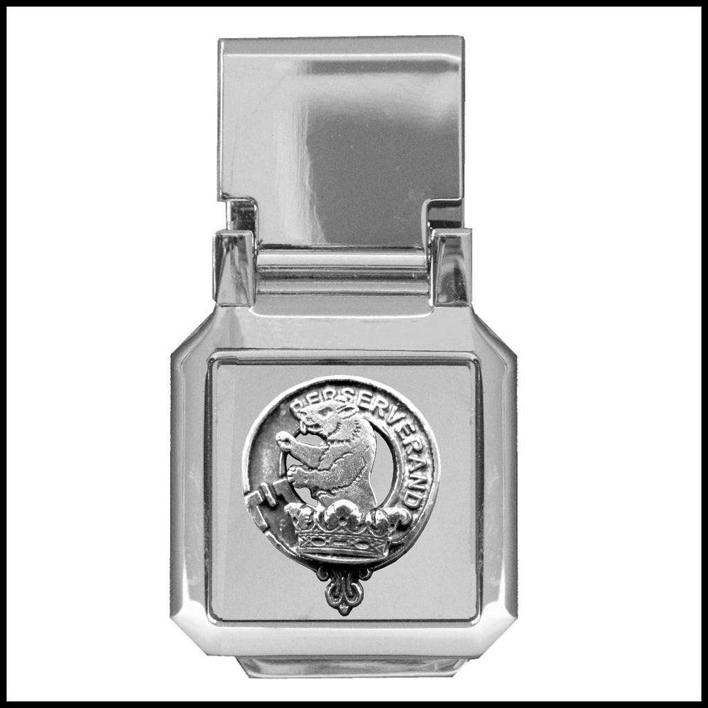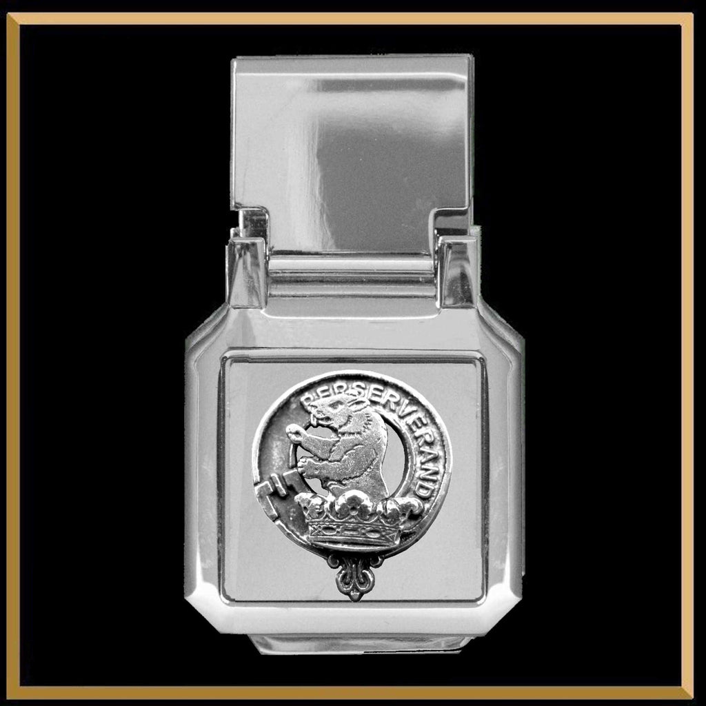 Your proud Scottish heritage can be displayed when you use this beautiful Scottish Clan crest money clip. The money clip is made of high quality stainless steel and measures 2 1/4" by 1 1/4" (57 mm x 32 mm). The Scottish Clan crest is exquisitely handcrafted and can be customized in your choice of pewter or sterling silver.