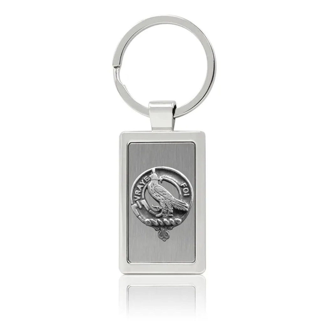 Your proud Scottish heritage can be displayed with this beautiful Clan crest stainless steel key ring. This Clan key ring is available with either a pewter or sterling silver Clan crest. The clan crest has been designed and manufactured entirely by Celtic Studio in Canada for generations.
