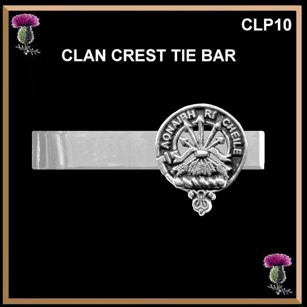 Your proud Scottish Clan heritage can be displayed by wearing your beautiful Scottish Clan clip tie bar. Each Clan tie bar is exquisitely handcrafted in high detail in lead free pewter or sterling silver and is mounted on a base metal tie bar. The Clan clip tie bar crest is 19.5 mm.