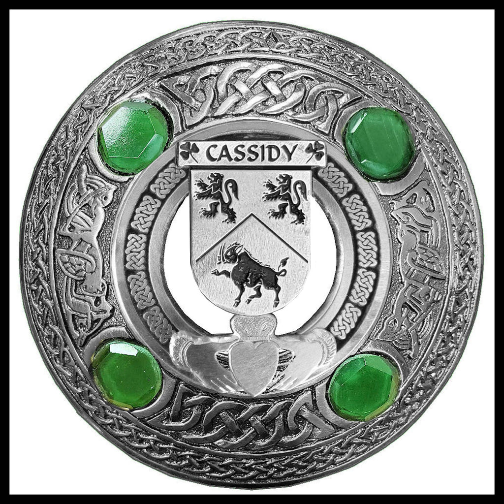 Cassidy Irish Claddagh Coat of Arms Plaid brooch ~ Emerald stones