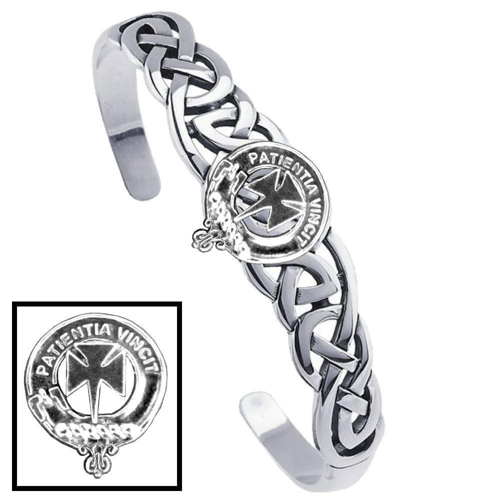 A superb high quality Celtic Interlace cuff bracelet with your Clan Crest solidly made in solid sterling silver. The bracelet is created with an intricate Celtic weave pattern. This attractive bracelet fits any wrist size. A great way to display your unique Clan affiliation or just because you love everything Celtic! All Clans are available. The Celtic Interlace design is the symbol of eternal life or all things that last forever! Like love for that special person in your life.