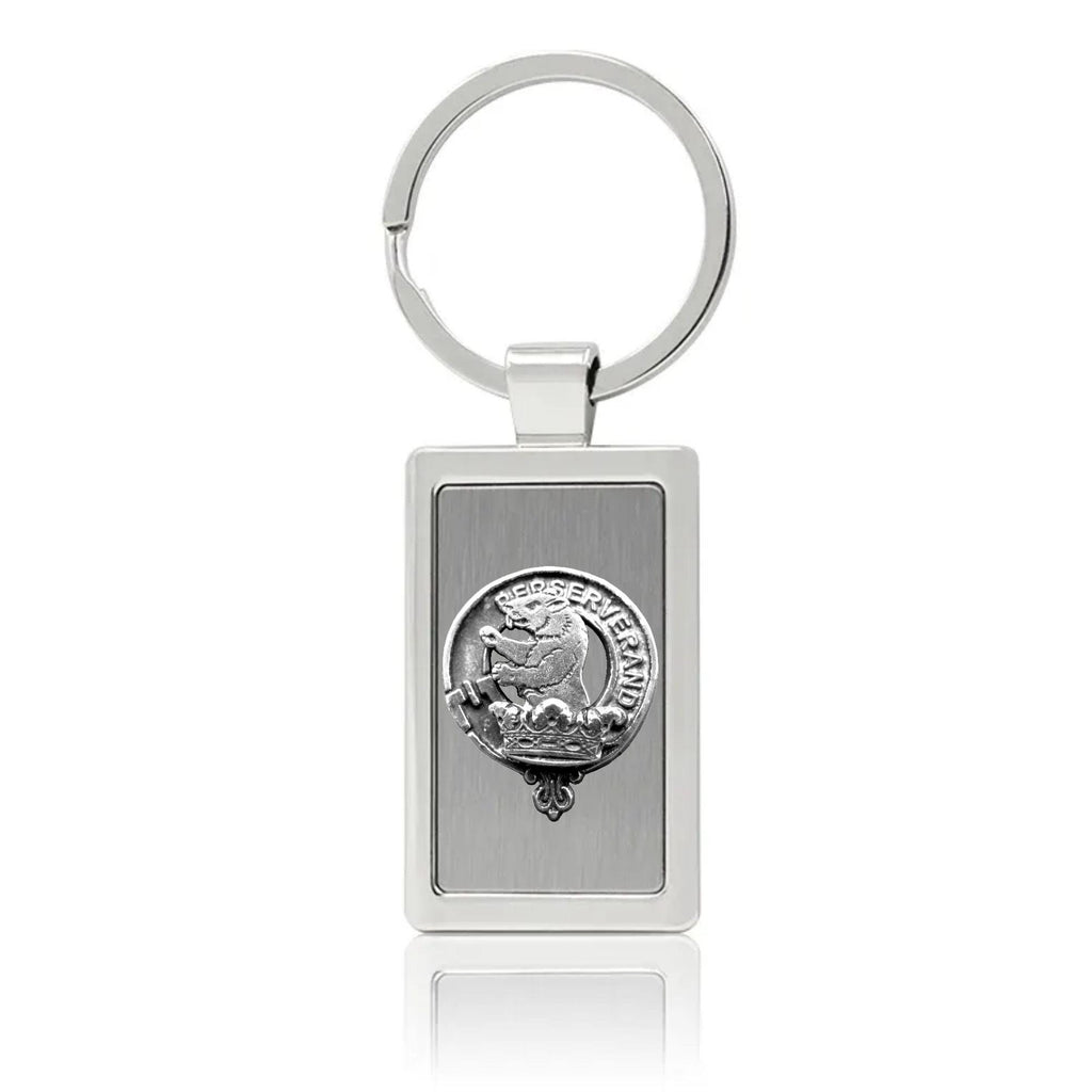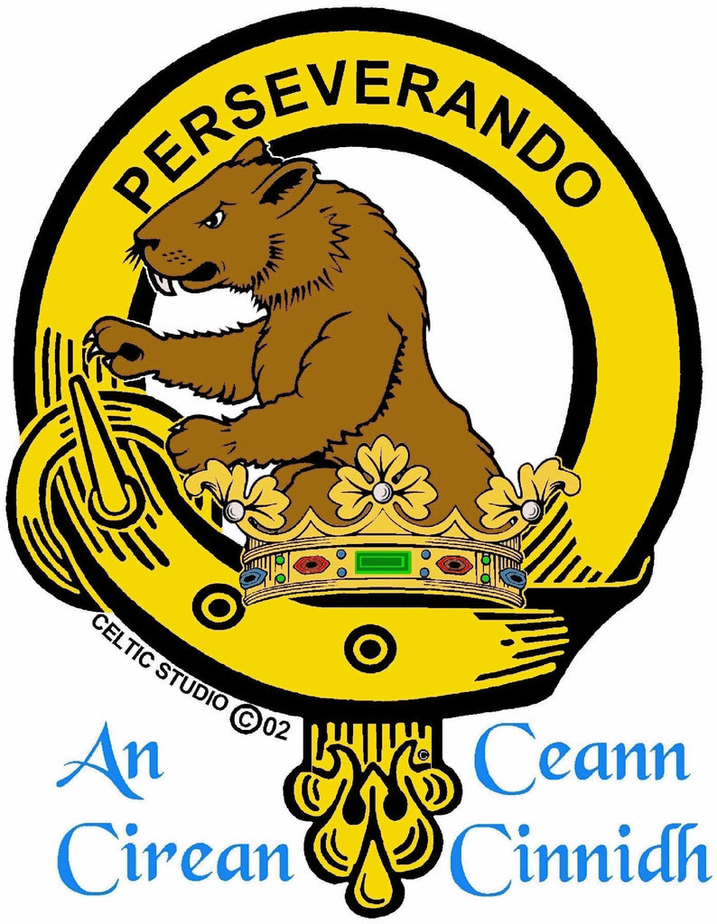 Your proud Scottish heritage can be displayed with this beautiful Clan crest stainless steel key ring. This Clan key ring is available with either a pewter or sterling silver Clan crest. The clan crest has been designed and manufactured entirely by Celtic Studio in Canada for generations.