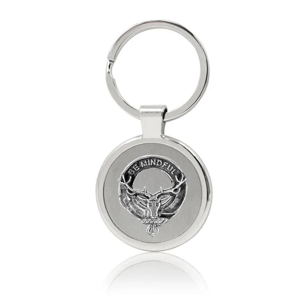 Your proud Scottish heritage can be displayed with this beautiful Clan crest stainless steel key ring. This Clan key ring is available with either a pewter or sterling silver Clan crest. The clan crest has been designed and manufactured entirely by Celtic Studio in Canada for generations.