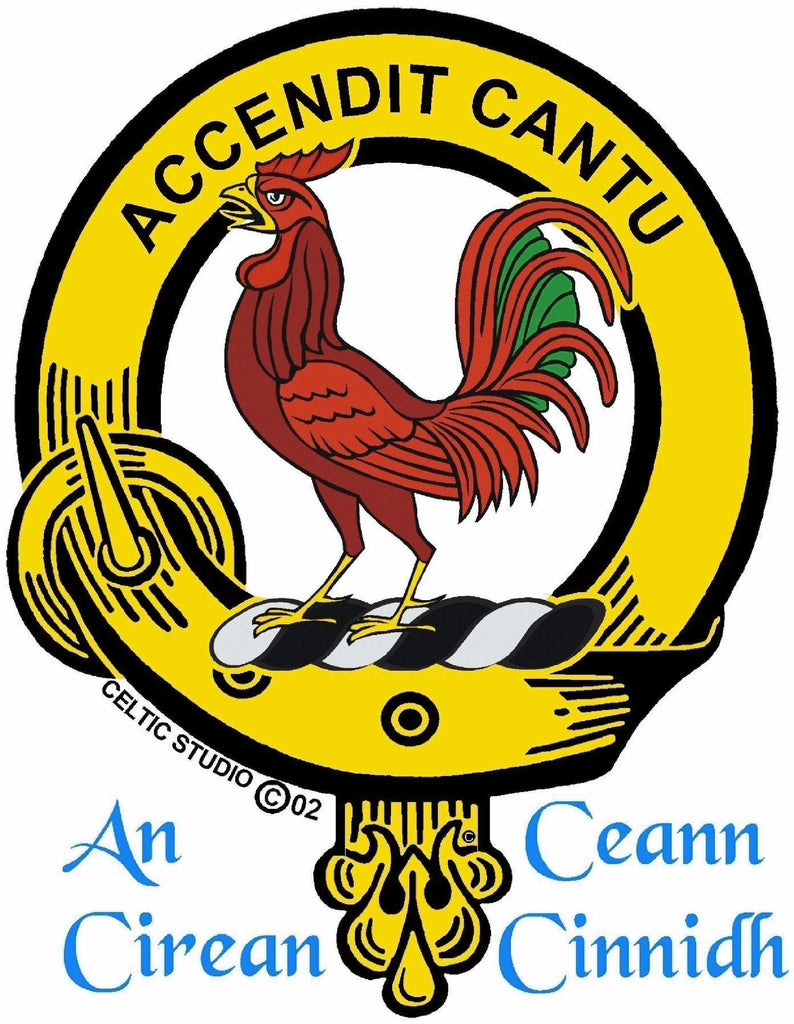 Your proud Scottish heritage can be displayed with this beautiful Clan crest stainless steel key ring. This Clan key ring is available with either a pewter or sterling silver Clan crest. The clan crest has been designed and manufactured entirely by Celtic Studio in Canada for generations.