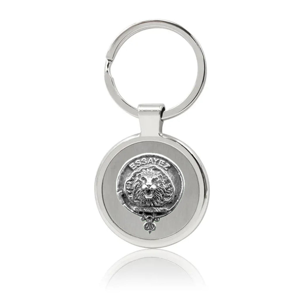 Your proud Scottish heritage can be displayed with this beautiful Clan crest stainless steel key ring. This Clan key ring is available with either a pewter or sterling silver Clan crest. The clan crest has been designed and manufactured entirely by Celtic Studio in Canada for generations.