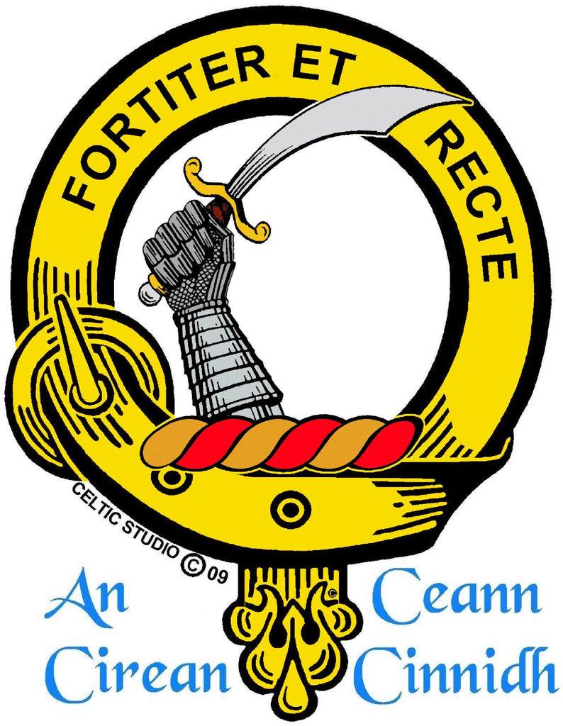 Your proud Scottish heritage can be displayed with this beautiful Clan crest stainless steel key ring. This Clan key ring is available with either a pewter or sterling silver Clan crest. The clan crest has been designed and manufactured entirely by Celtic Studio in Canada for generations.