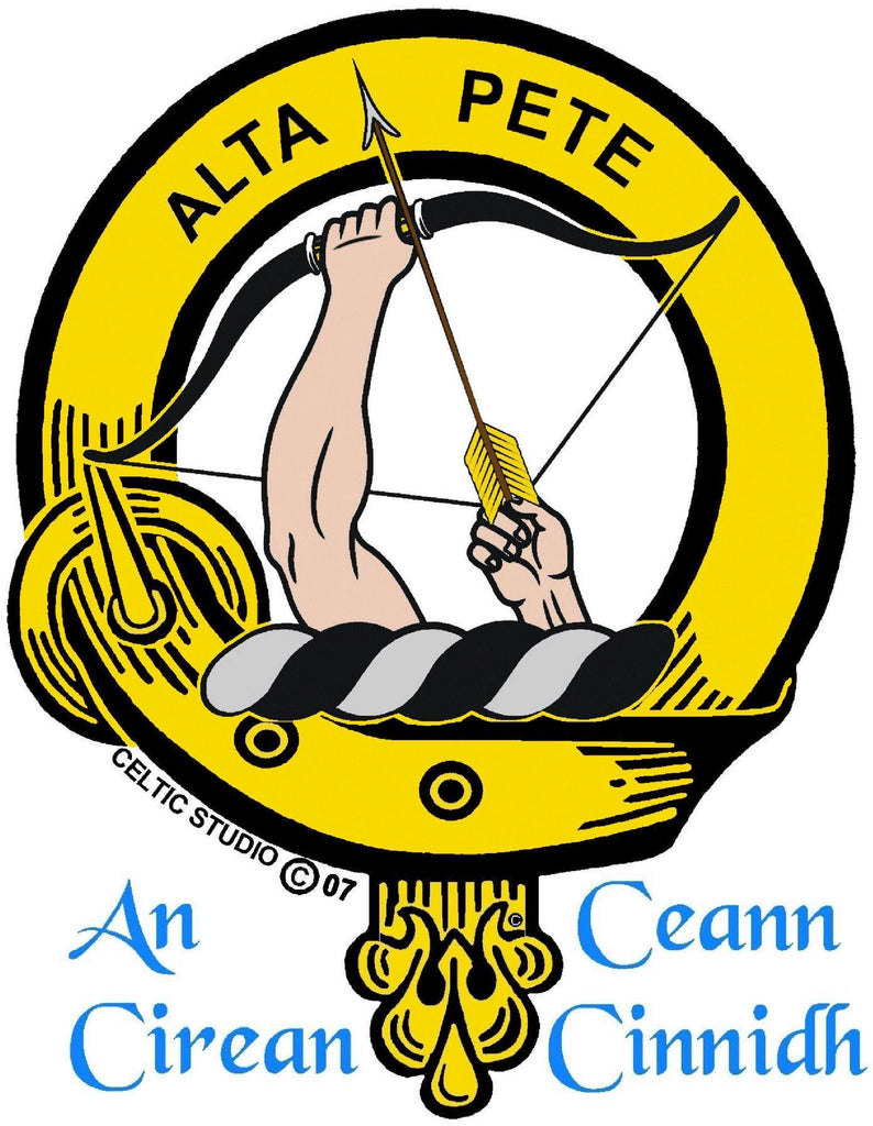 Your proud Scottish heritage can be displayed with this beautiful Clan crest stainless steel key ring. This Clan key ring is available with either a pewter or sterling silver Clan crest. The clan crest has been designed and manufactured entirely by Celtic Studio in Canada for generations.