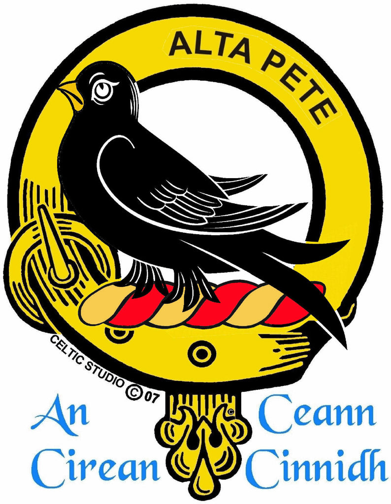 Your proud Scottish heritage can be displayed with this beautiful Clan crest stainless steel key ring. This Clan key ring is available with either a pewter or sterling silver Clan crest. The clan crest has been designed and manufactured entirely by Celtic Studio in Canada for generations.