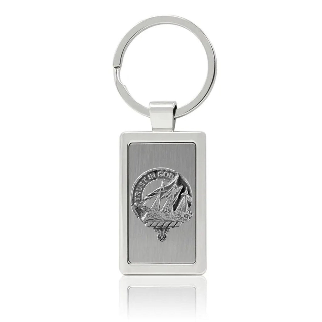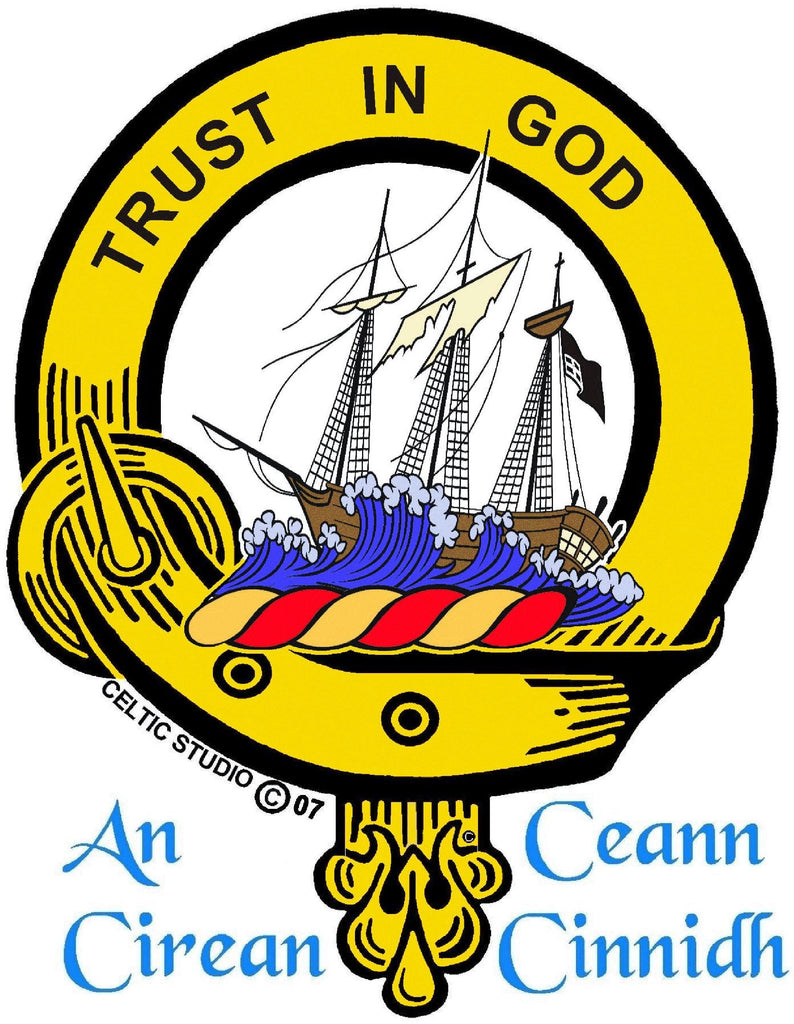 Your proud Scottish heritage can be displayed with this beautiful Clan crest stainless steel key ring. This Clan key ring is available with either a pewter or sterling silver Clan crest. The clan crest has been designed and manufactured entirely by Celtic Studio in Canada for generations.