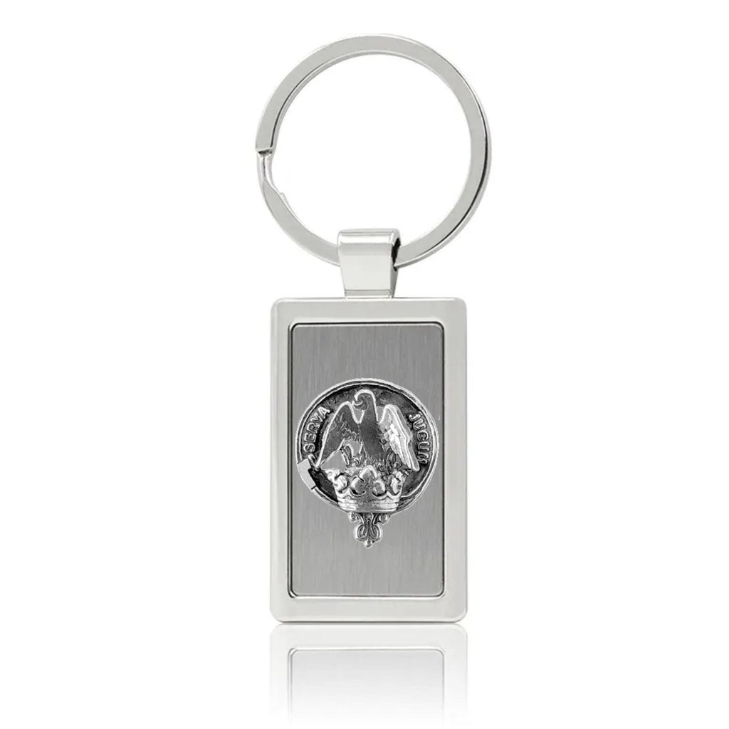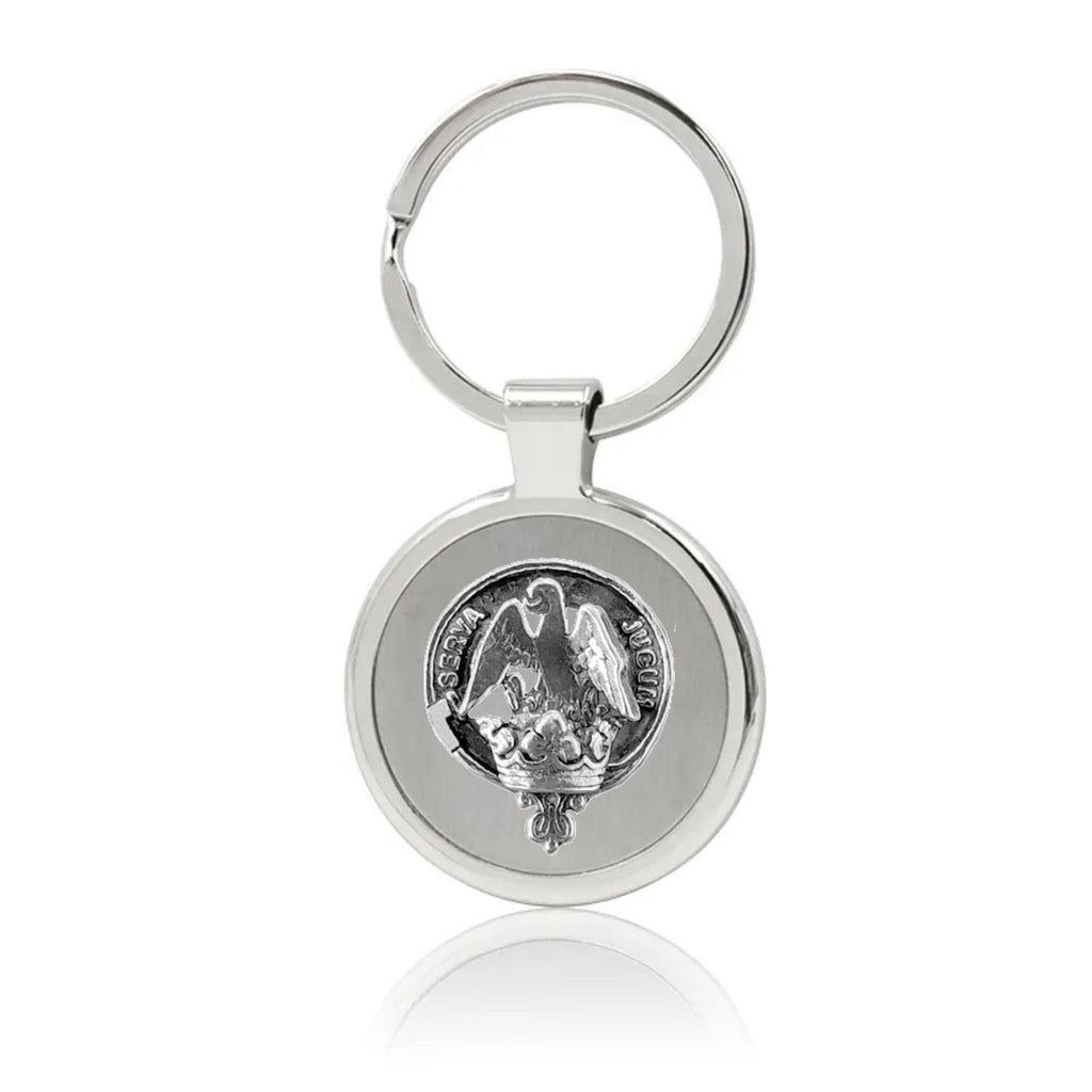 Your proud Scottish heritage can be displayed with this beautiful Clan crest stainless steel key ring. This Clan key ring is available with either a pewter or sterling silver Clan crest. The clan crest has been designed and manufactured entirely by Celtic Studio in Canada for generations.