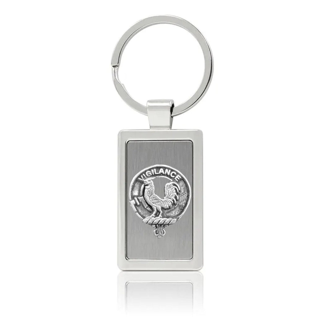 Your proud Scottish heritage can be displayed with this beautiful Clan crest stainless steel key ring. This Clan key ring is available with either a pewter or sterling silver Clan crest. The clan crest has been designed and manufactured entirely by Celtic Studio in Canada for generations.