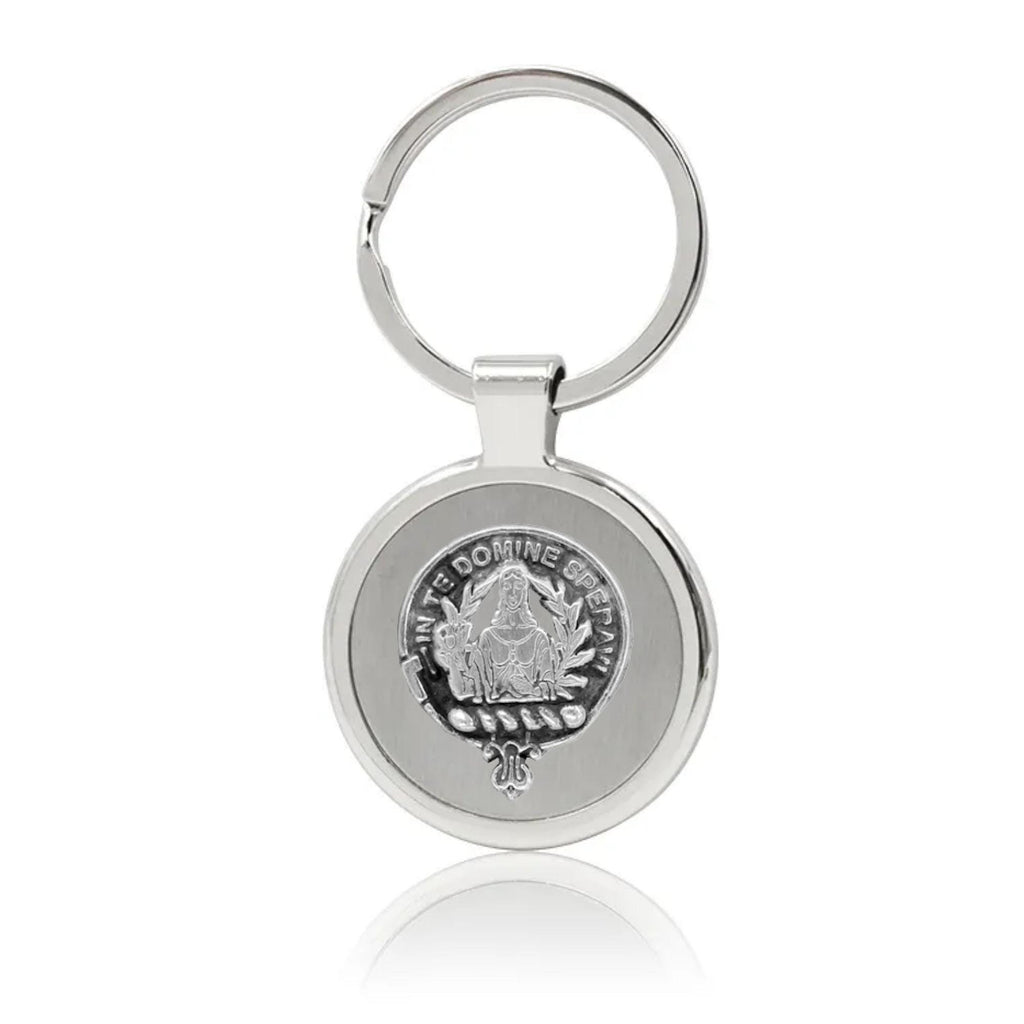Your proud Scottish heritage can be displayed with this beautiful Clan crest stainless steel key ring. This Clan key ring is available with either a pewter or sterling silver Clan crest. The clan crest has been designed and manufactured entirely by Celtic Studio in Canada for generations.