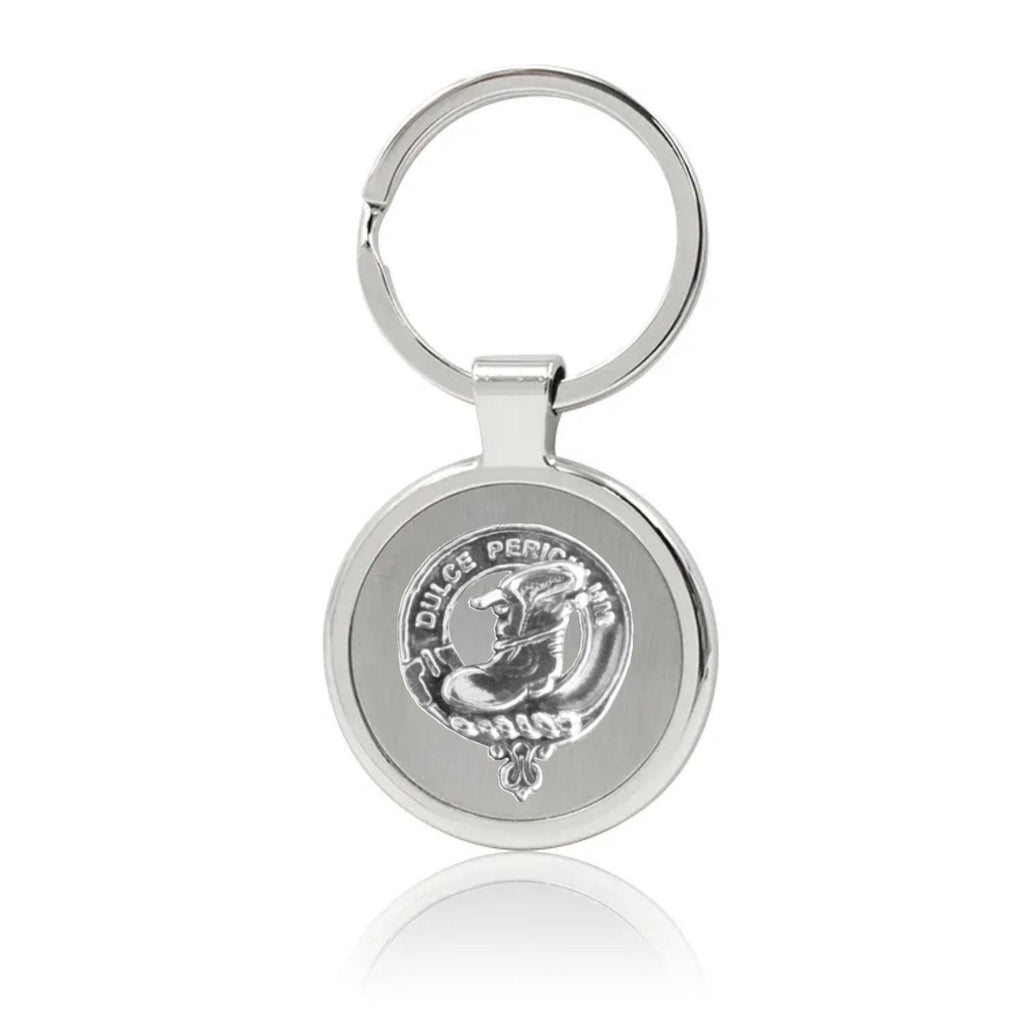 Your proud Scottish heritage can be displayed with this beautiful Clan crest stainless steel key ring. This Clan key ring is available with either a pewter or sterling silver Clan crest. The clan crest has been designed and manufactured entirely by Celtic Studio in Canada for generations.