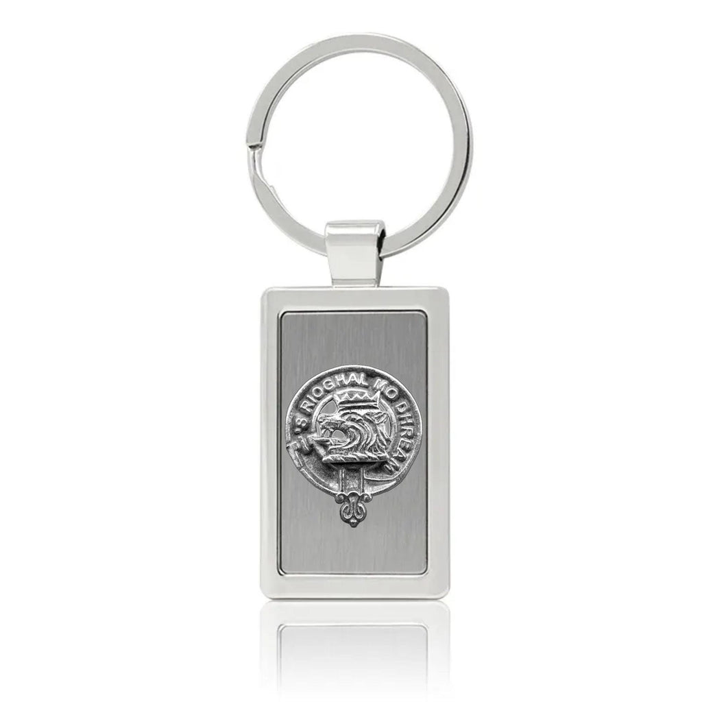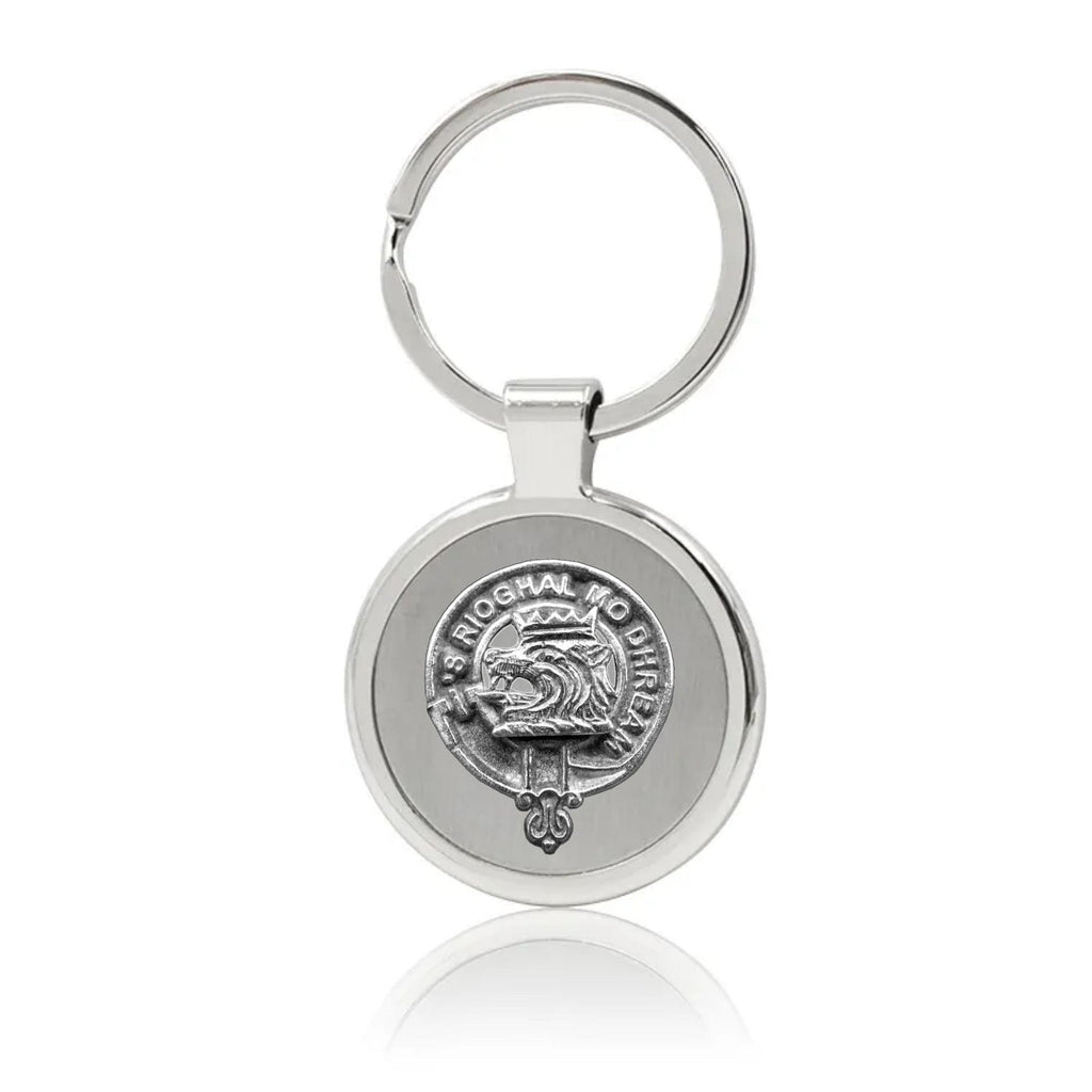 Your proud Scottish heritage can be displayed with this beautiful Clan crest stainless steel key ring. This Clan key ring is available with either a pewter or sterling silver Clan crest. The clan crest has been designed and manufactured entirely by Celtic Studio in Canada for generations.