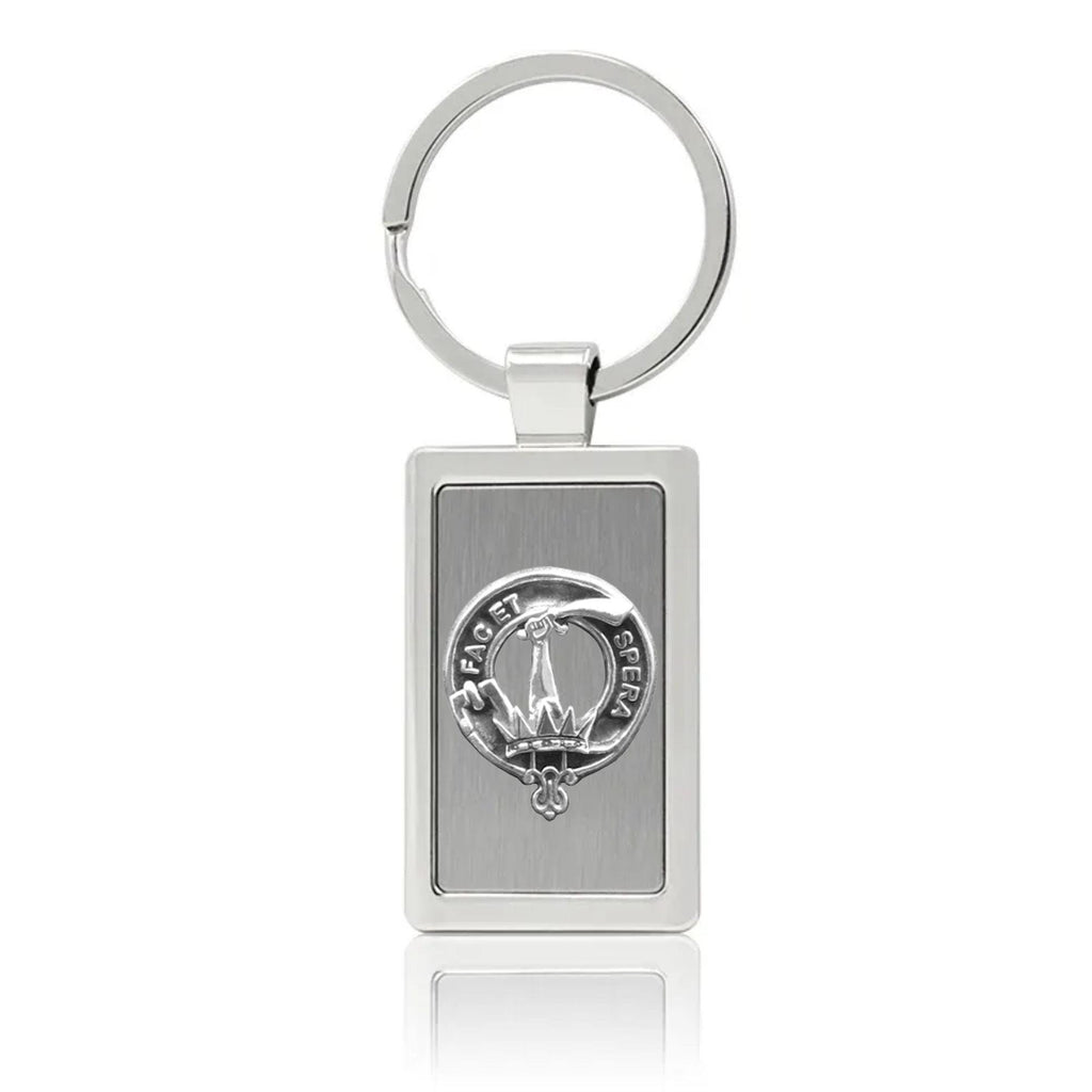 Your proud Scottish heritage can be displayed with this beautiful Clan crest stainless steel key ring. This Clan key ring is available with either a pewter or sterling silver Clan crest. The clan crest has been designed and manufactured entirely by Celtic Studio in Canada for generations.