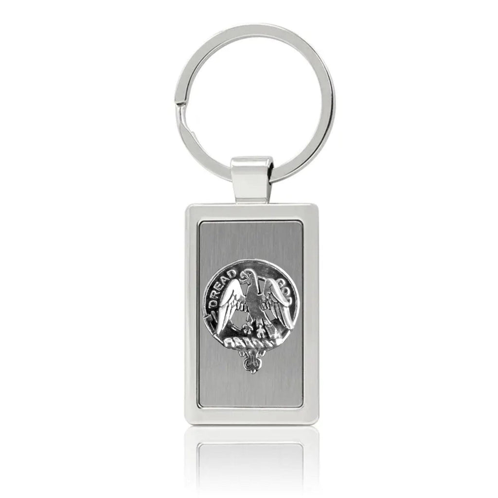 Your proud Scottish heritage can be displayed with this beautiful Clan crest stainless steel key ring. This Clan key ring is available with either a pewter or sterling silver Clan crest. The clan crest has been designed and manufactured entirely by Celtic Studio in Canada for generations.