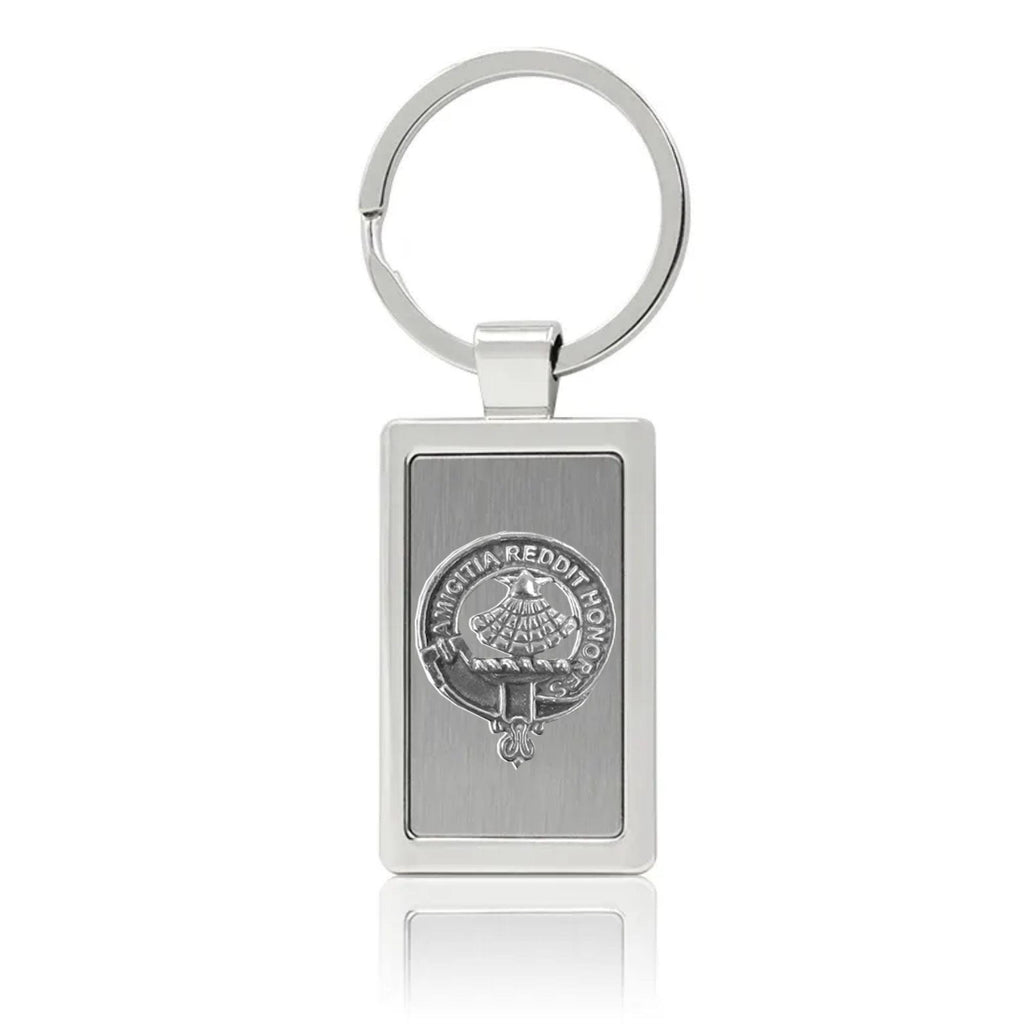Your proud Scottish heritage can be displayed with this beautiful Clan crest stainless steel key ring. This Clan key ring is available with either a pewter or sterling silver Clan crest. The clan crest has been designed and manufactured entirely by Celtic Studio in Canada for generations.