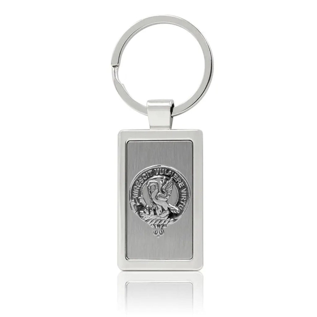 Your proud Scottish heritage can be displayed with this beautiful Clan crest stainless steel key ring. This Clan key ring is available with either a pewter or sterling silver Clan crest. The clan crest has been designed and manufactured entirely by Celtic Studio in Canada for generations.