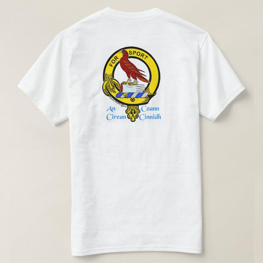 Display your Scottish heritage with pride on one of our white t-shirts featuring your own full colour Clan crest. Made of 100% pre-shrunk heavy weight cotton, these are of superior quality.