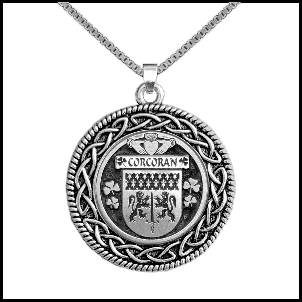 Corcoran Irish Coat of Arms Celtic Interlace Disk Pendant ~ IP06