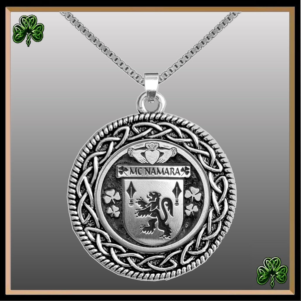 McNamara Irish Coat of Arms Celtic Interlace Disk Pendant ~ IP06