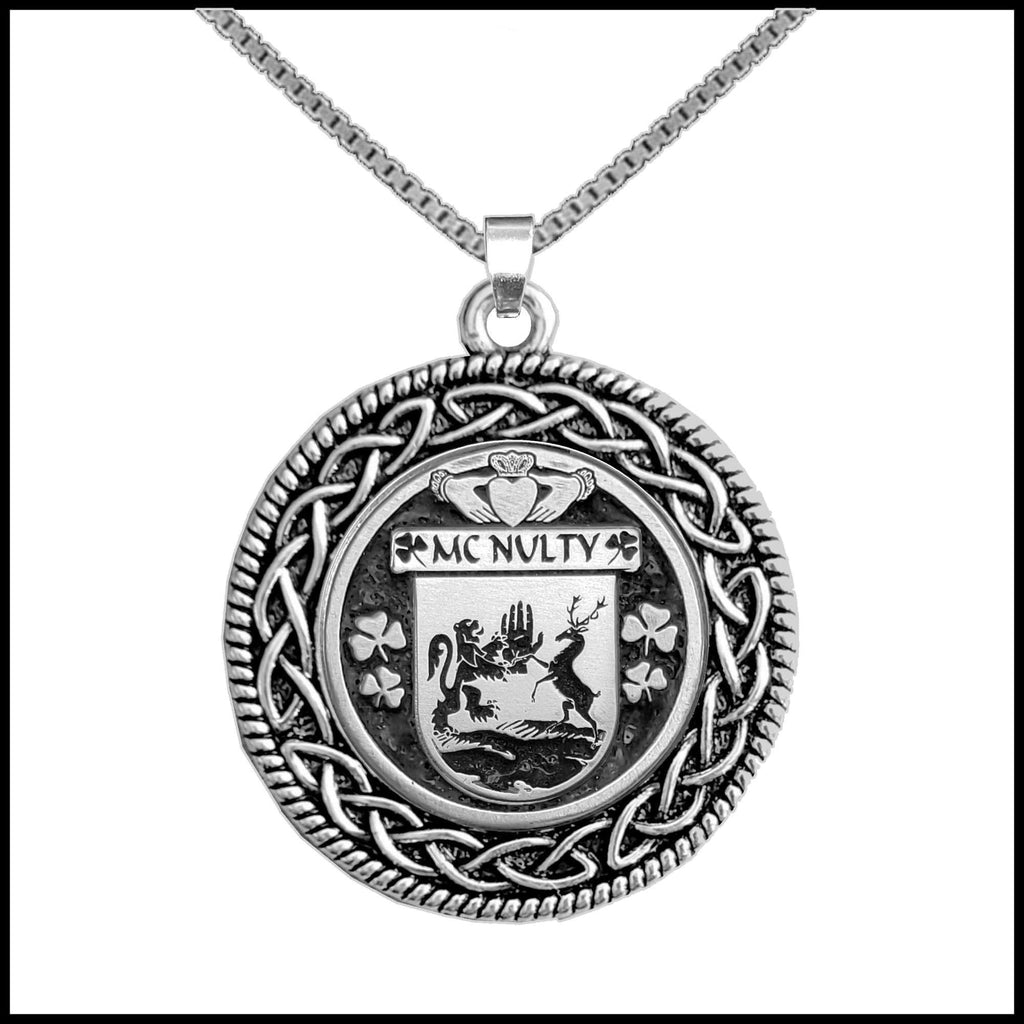 McNulty Irish Coat of Arms Celtic Interlace Disk Pendant ~ IP06