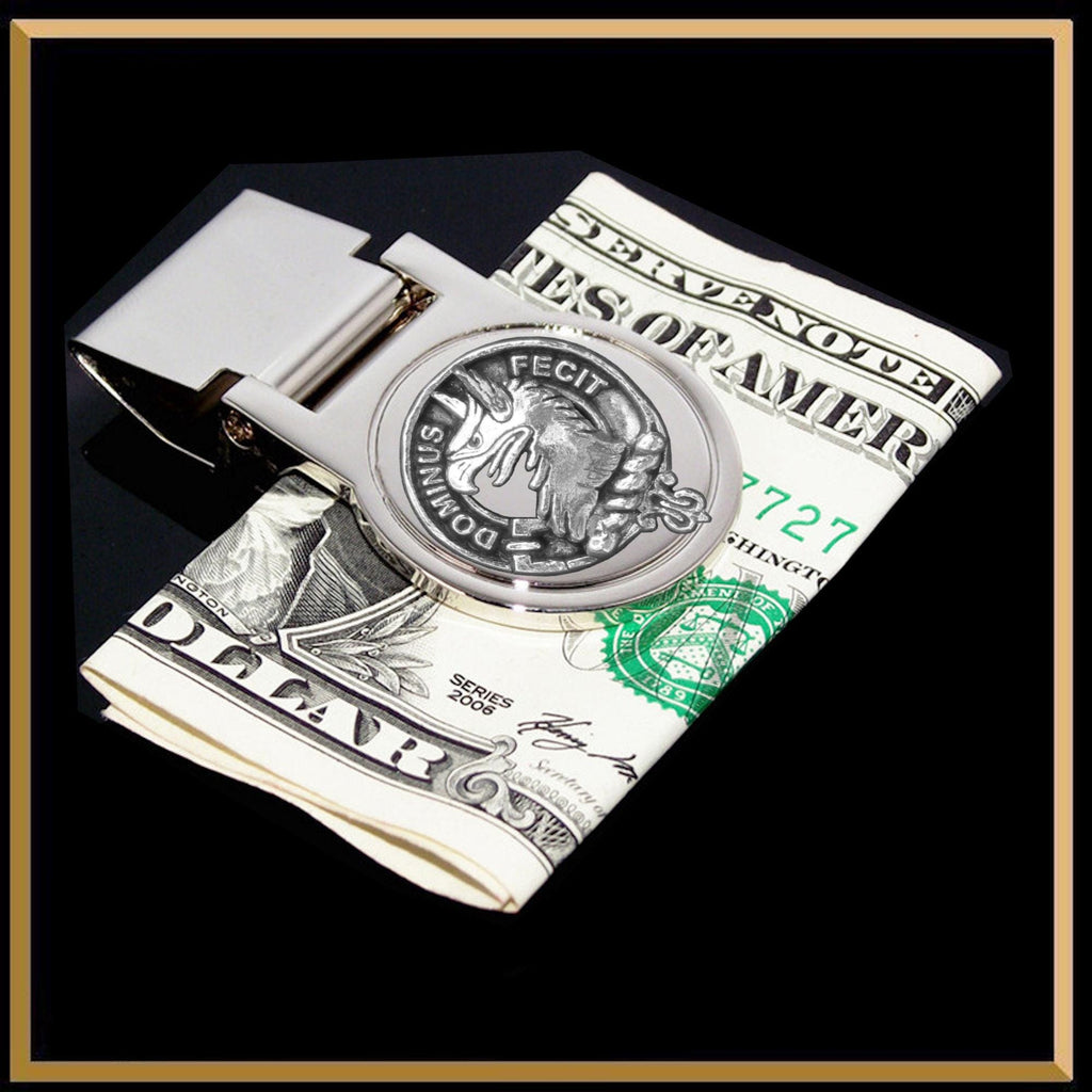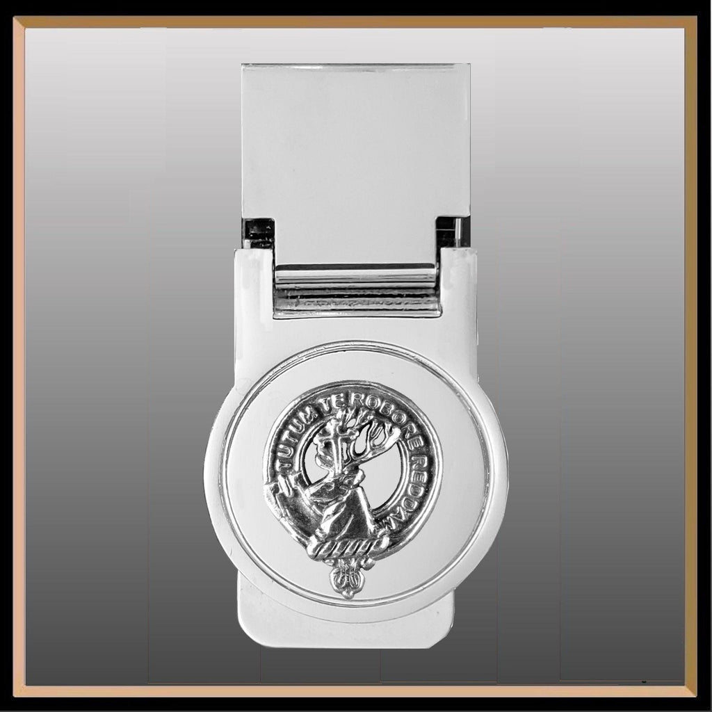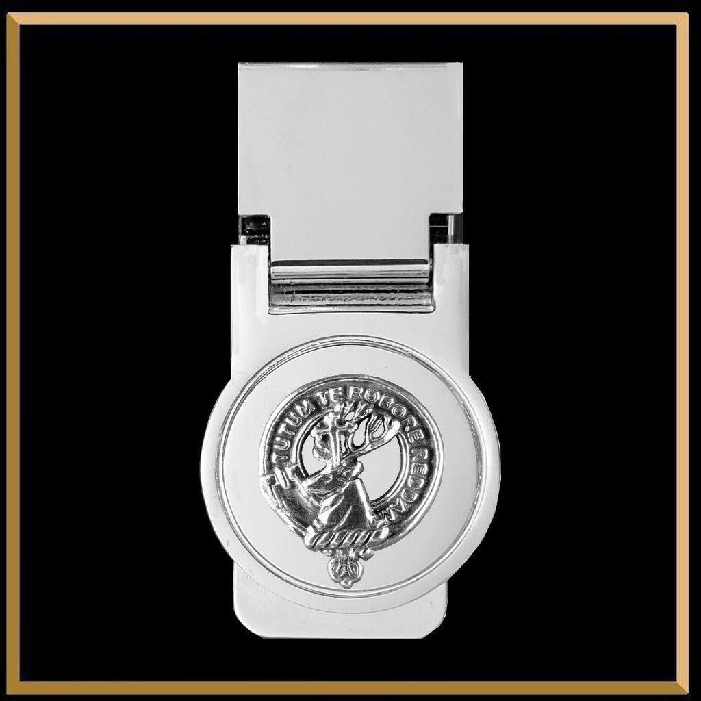 Your proud Scottish heritage can be displayed when you use this beautiful Scottish Clan crest money clip. The money clip is made of high quality stainless steel and measures 2 1/4" by 1 1/4" (57 mm x 32 mm). The Scottish Clan crest is exquisitely handcrafted and can be customized in your choice of pewter or sterling silver.