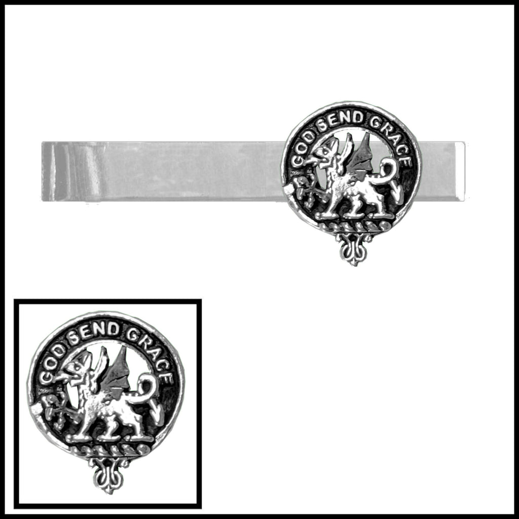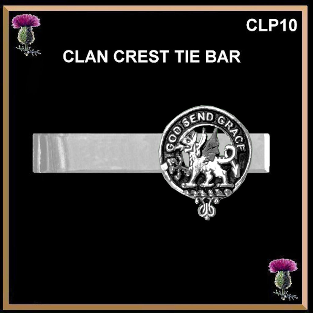 Your proud Scottish Clan heritage can be displayed by wearing your beautiful Scottish Clan clip tie bar. Each Clan tie bar is exquisitely handcrafted in high detail in lead free pewter or sterling silver and is mounted on a base metal tie bar. The Clan clip tie bar crest is 19.5 mm.