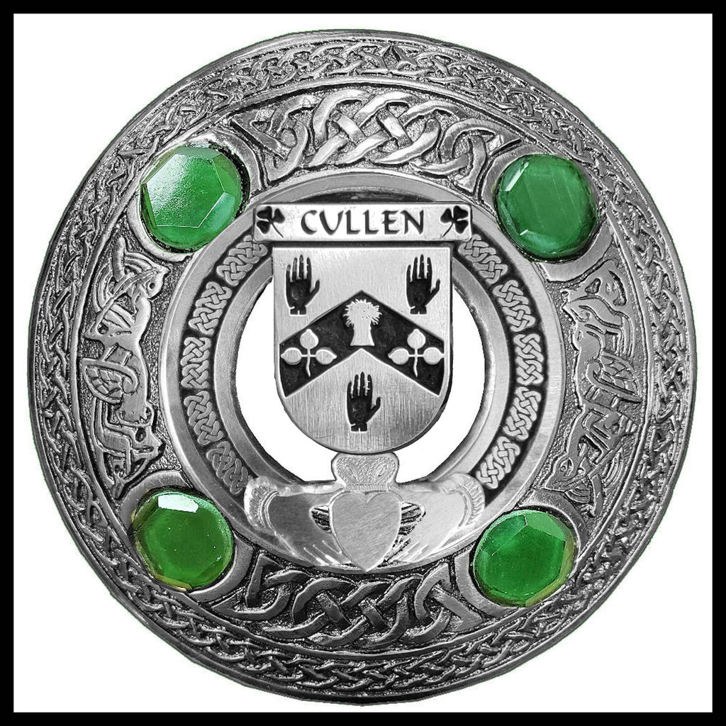 Cullen Irish Claddagh Coat of Arms Plaid brooch ~ Emerald stones