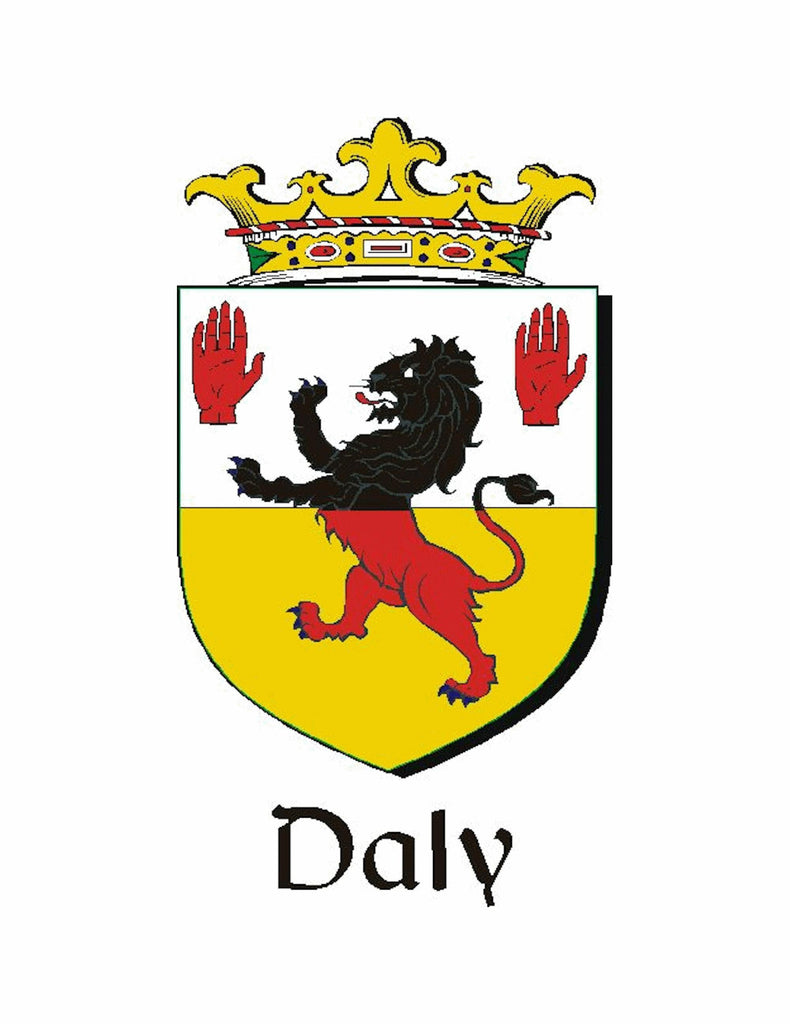 The Irish Coat of Arms disk is made just for your Irish family name. The design is excellent. Your Irish Arms and name (spelled the way you wish) are surmounted by the famous symbol of Ireland, a Claddagh. This designs symbolizes a heart for love, a crown for loyalty and hands for friendship. On each side of your Arms are decorative shamrocks.