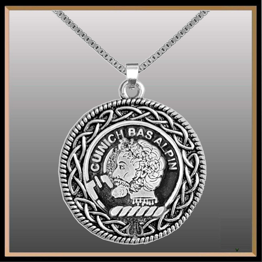 MacAlpin Clan Crest Celtic Interlace Disk Pendant, Scottish Family Crest ~ CLP06