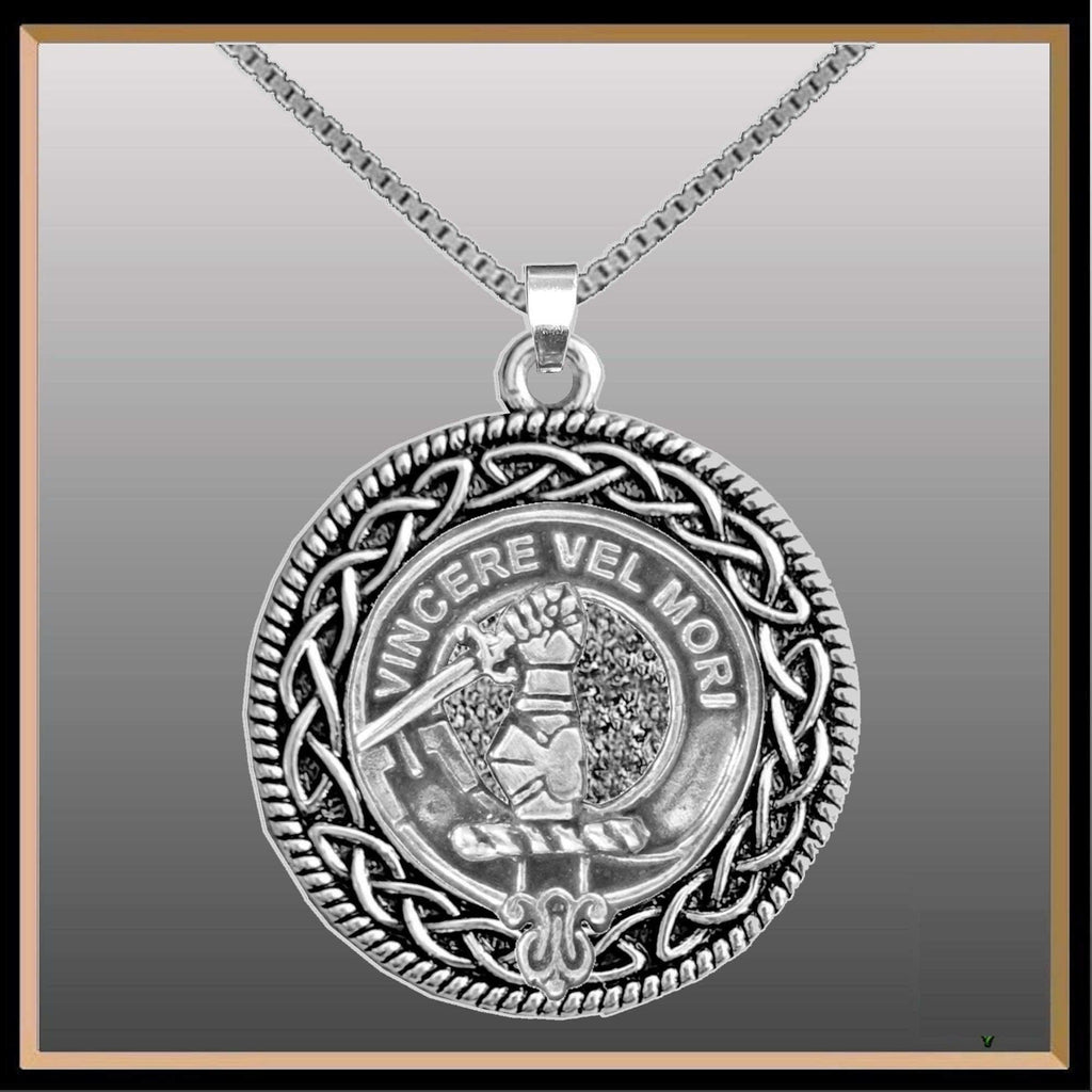 MacNeil Gigha Clan Crest Celtic Interlace Disk Pendant, Scottish Family Crest ~ CLP06