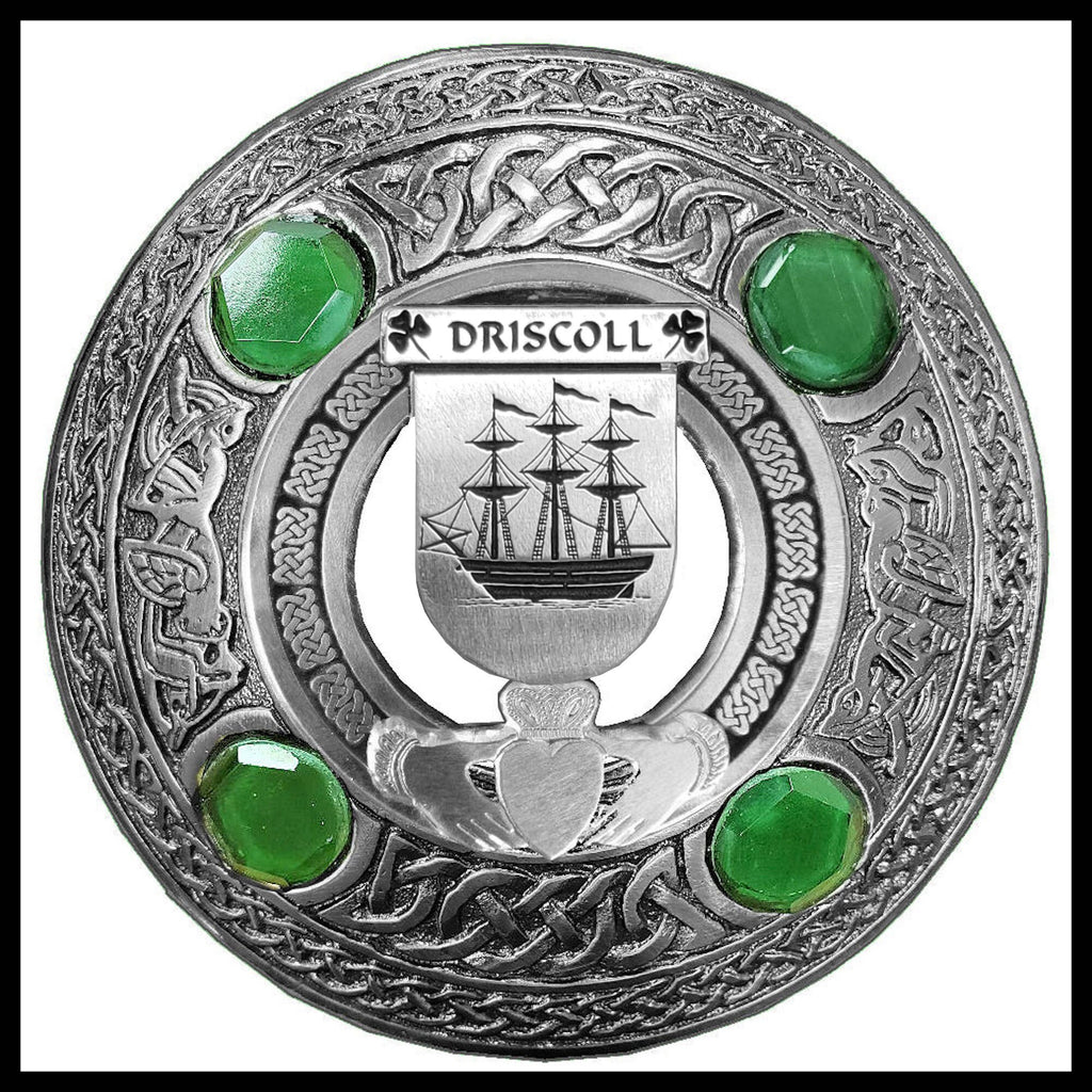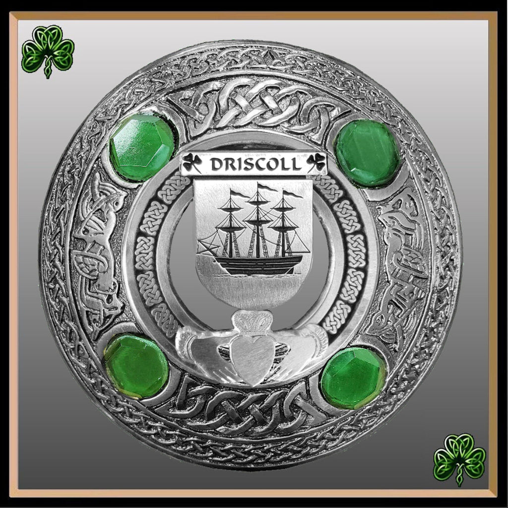 Driscoll Irish Claddagh Coat of Arms Plaid brooch ~ Emerald stones