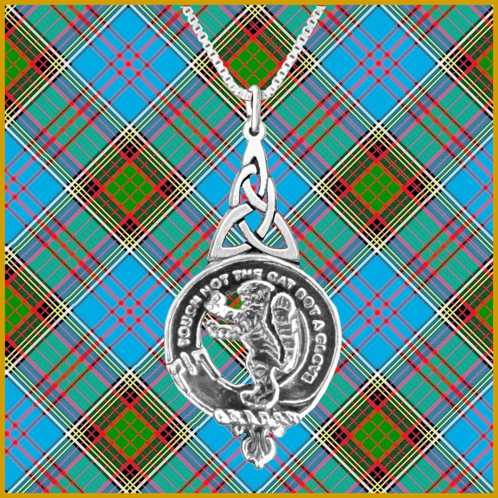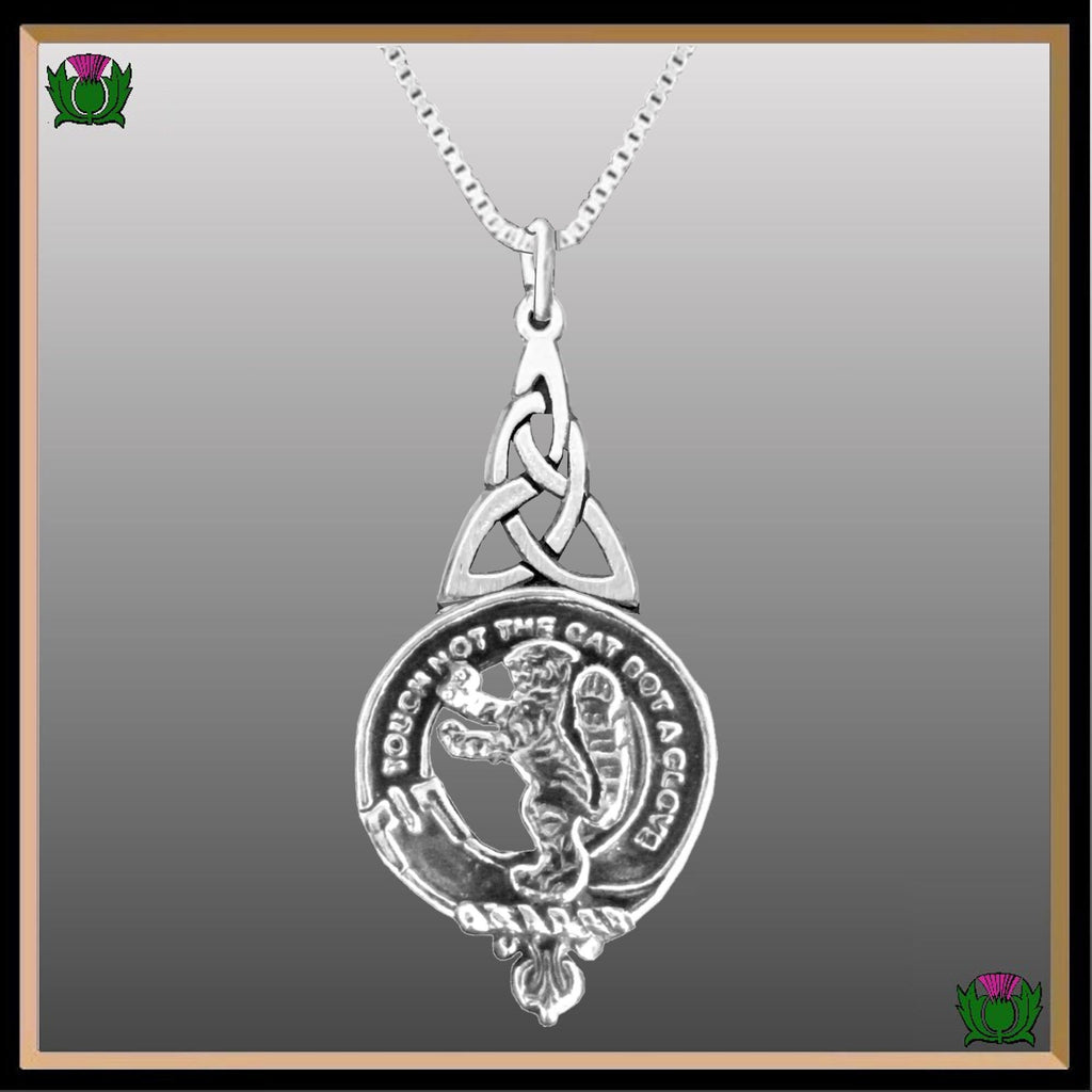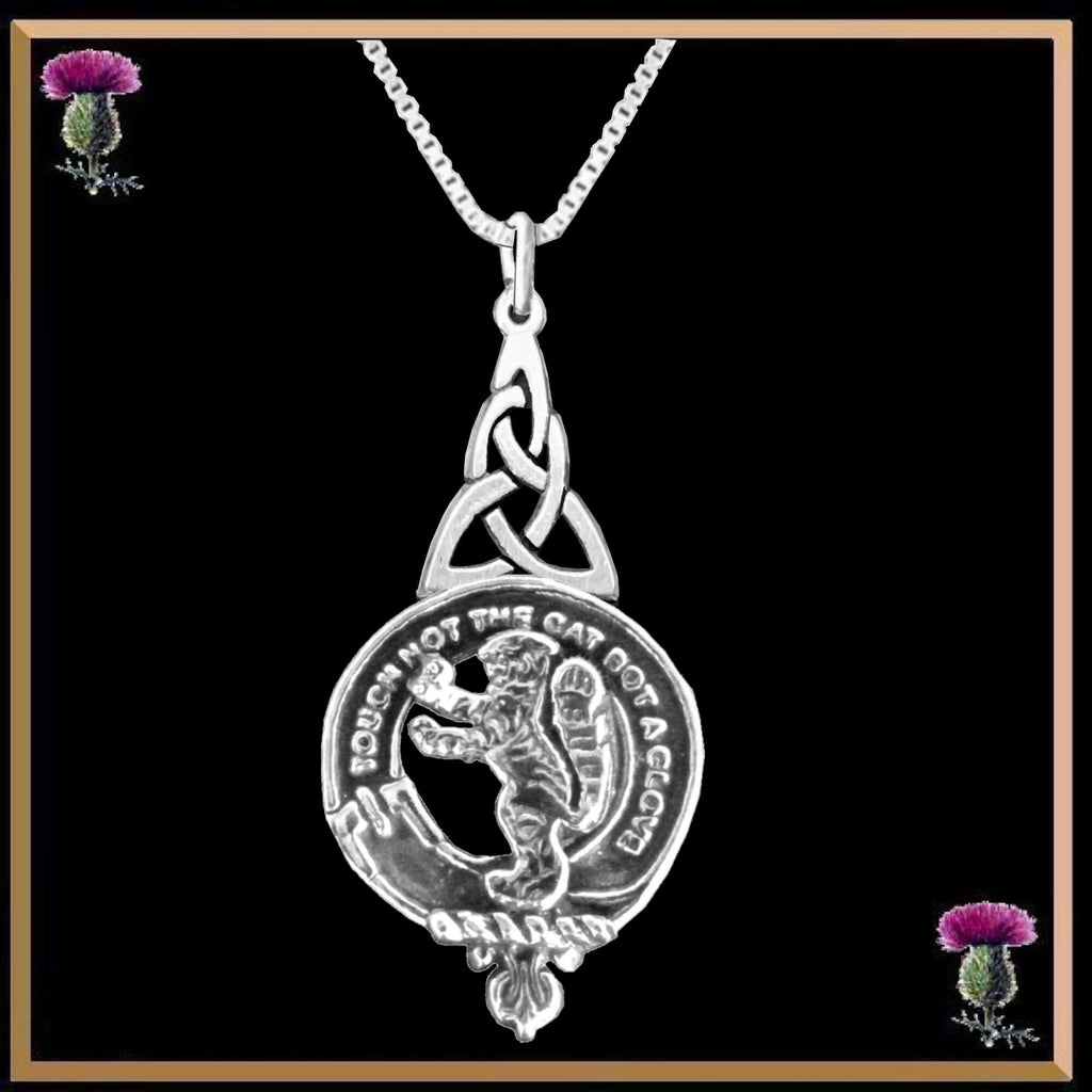 Your proud Scottish Clan heritage can be displayed through this beautiful Clan pendant. This exquisite Celtic interlace pendant is a beautifully elegant way to show your Clan crest.