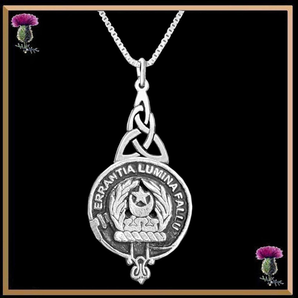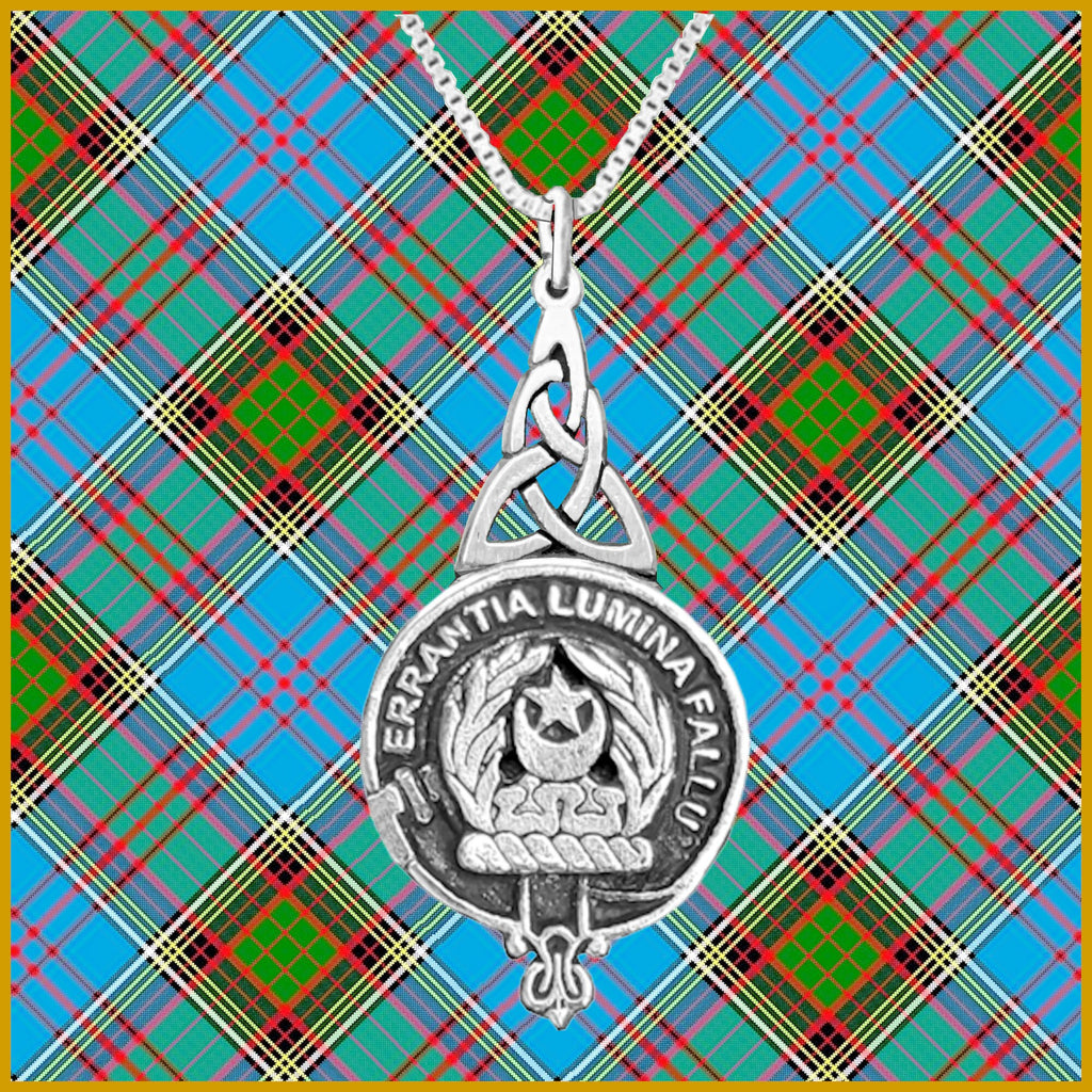 Your proud Scottish Clan heritage can be displayed through this beautiful Clan pendant. This exquisite Celtic interlace pendant is a beautifully elegant way to show your Clan crest.