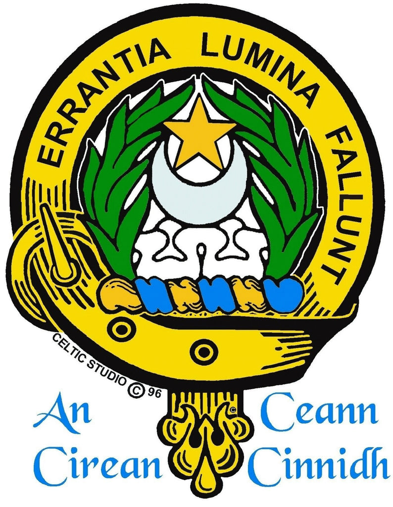 In ancient times, the chief of the Clan presented to his Clansmen his crest for them to wear as a symbol of their loyalty and Clan affiliation. The Clan Crest is 11/16" (19.5 mm) in diameter and the drop is 1-1/4" (32 mm) long.