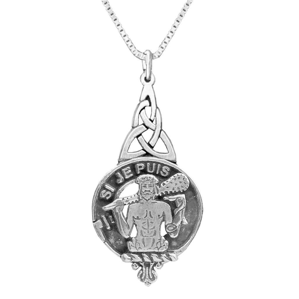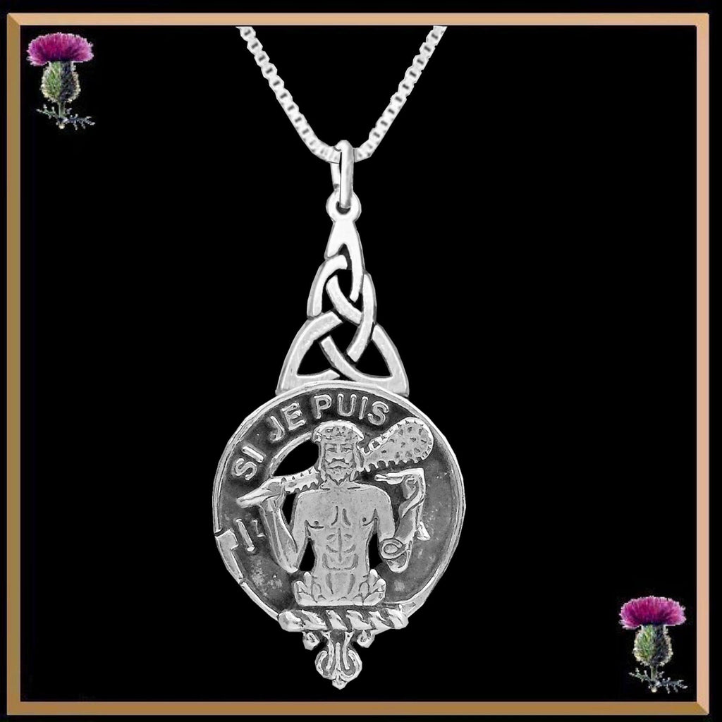 Your proud Scottish Clan heritage can be displayed through this beautiful Clan pendant. This exquisite Celtic interlace pendant is a beautifully elegant way to show your Clan crest.