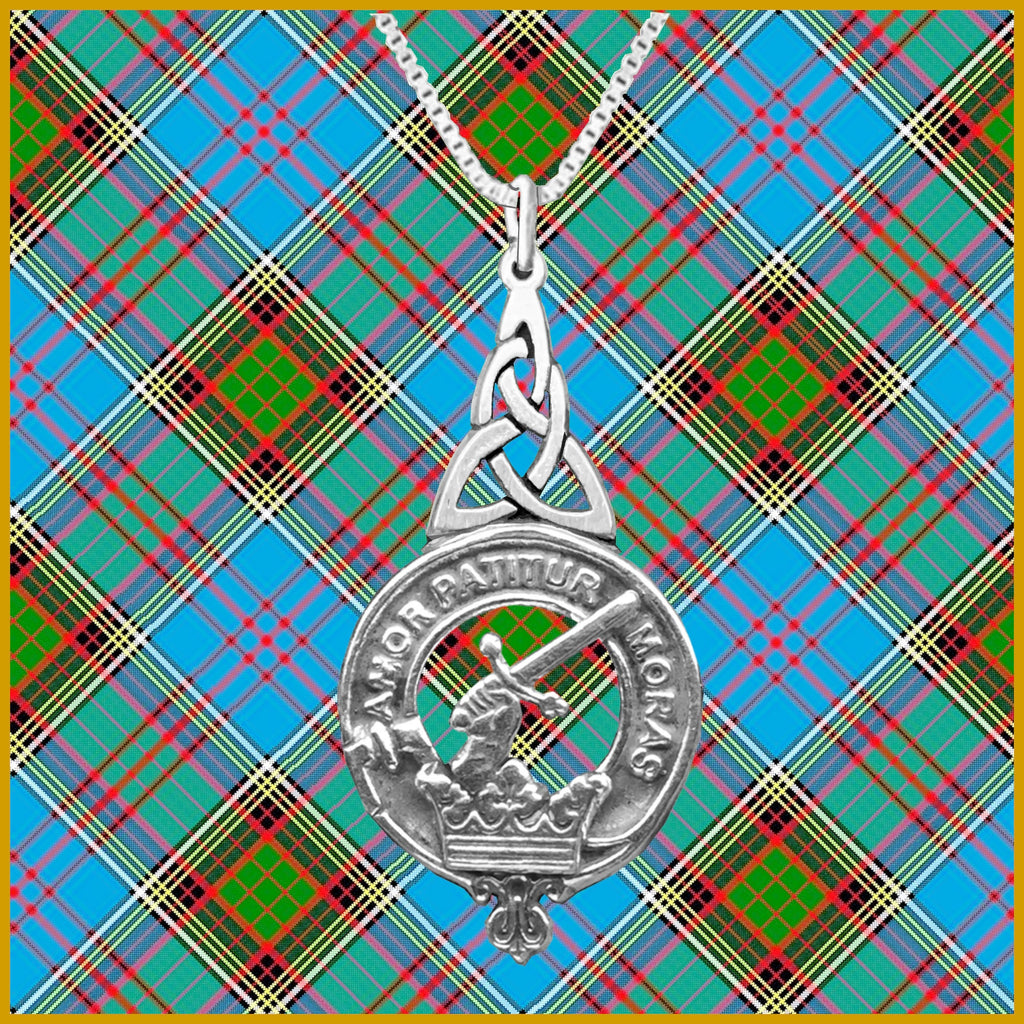 Your proud Scottish Clan heritage can be displayed through this beautiful Clan pendant. This exquisite Celtic interlace pendant is a beautifully elegant way to show your Clan crest.