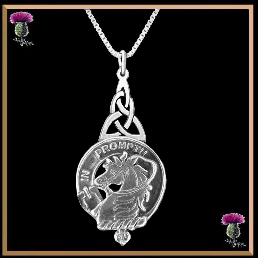 Your proud Scottish Clan heritage can be displayed through this beautiful Clan pendant. This exquisite Celtic interlace pendant is a beautifully elegant way to show your Clan crest.