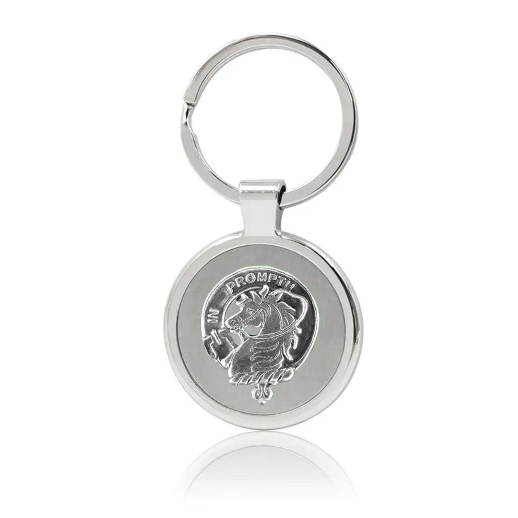Your proud Scottish heritage can be displayed with this beautiful Clan crest stainless steel key ring. This Clan key ring is available with either a pewter or sterling silver Clan crest. The clan crest has been designed and manufactured entirely by Celtic Studio in Canada for generations.