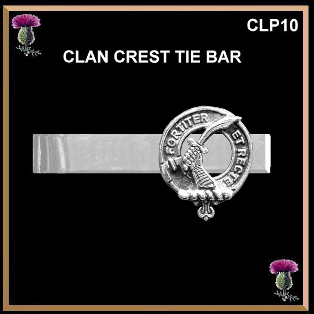 Your proud Scottish Clan heritage can be displayed by wearing your beautiful Scottish Clan clip tie bar. Each Clan tie bar is exquisitely handcrafted in high detail in lead free pewter or sterling silver and is mounted on a base metal tie bar. The Clan clip tie bar crest is 19.5 mm.