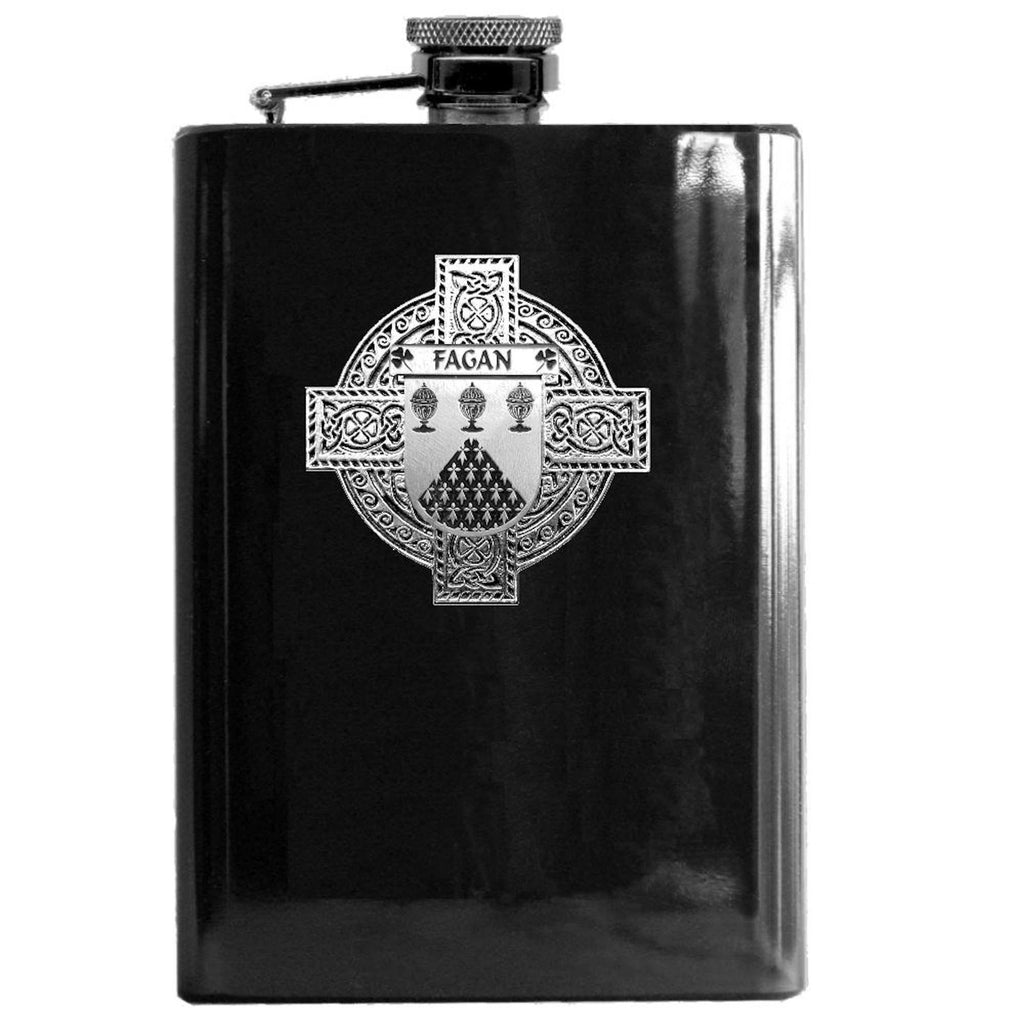 Fagan Irish Celtic Cross Badge 8 oz. Flask Green, Black or Stainless