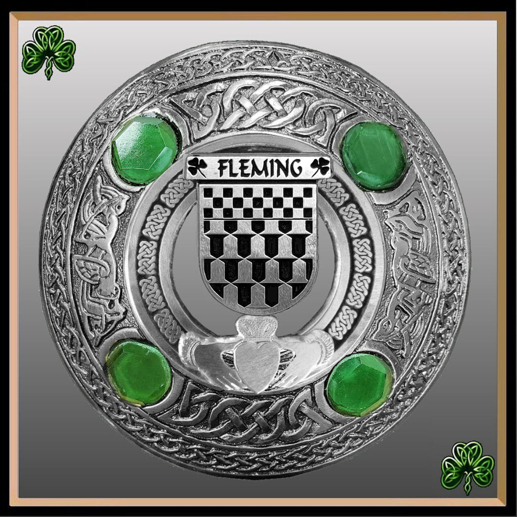 Fleming Irish Claddagh Coat of Arms Plaid brooch ~ Emerald stones