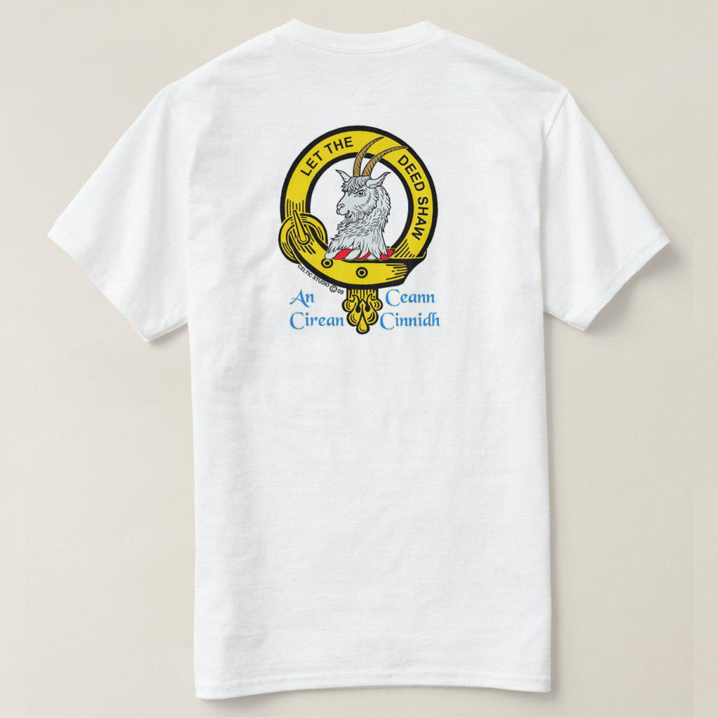 Display your Scottish heritage with pride on one of our white t-shirts featuring your own full colour Clan crest. Made of 100% pre-shrunk heavy weight cotton, these are of superior quality.
