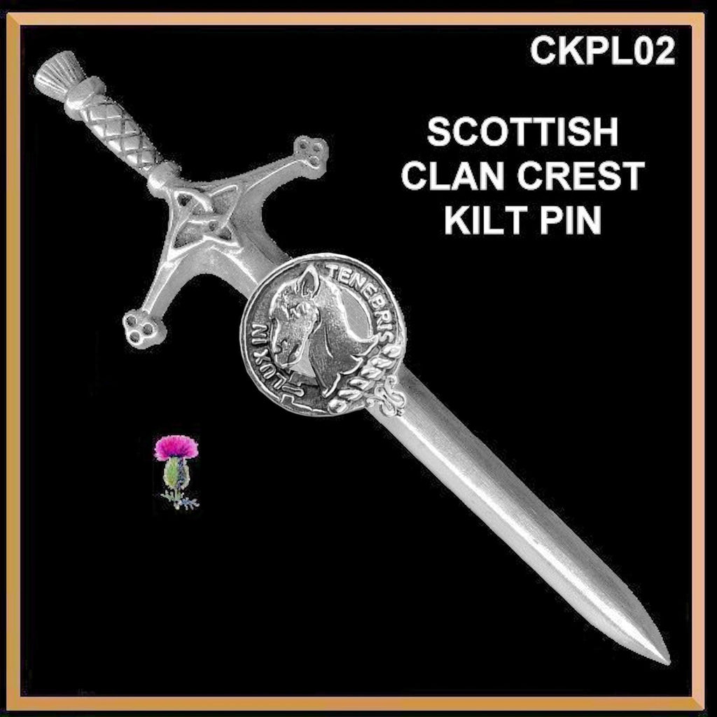 You can order your Clan kilt pin in either pewter or solid sterling silver. These are the finest detailed Clan crest kilt pins available in the world!