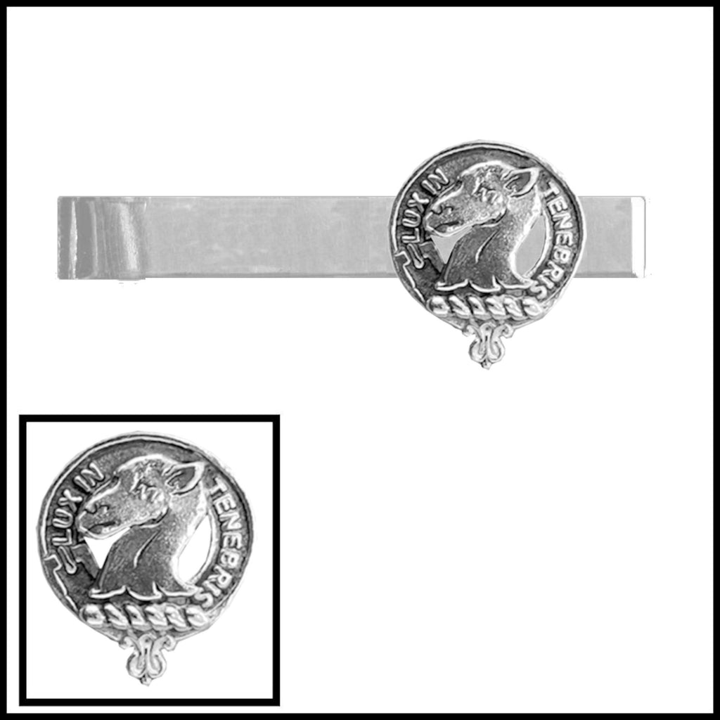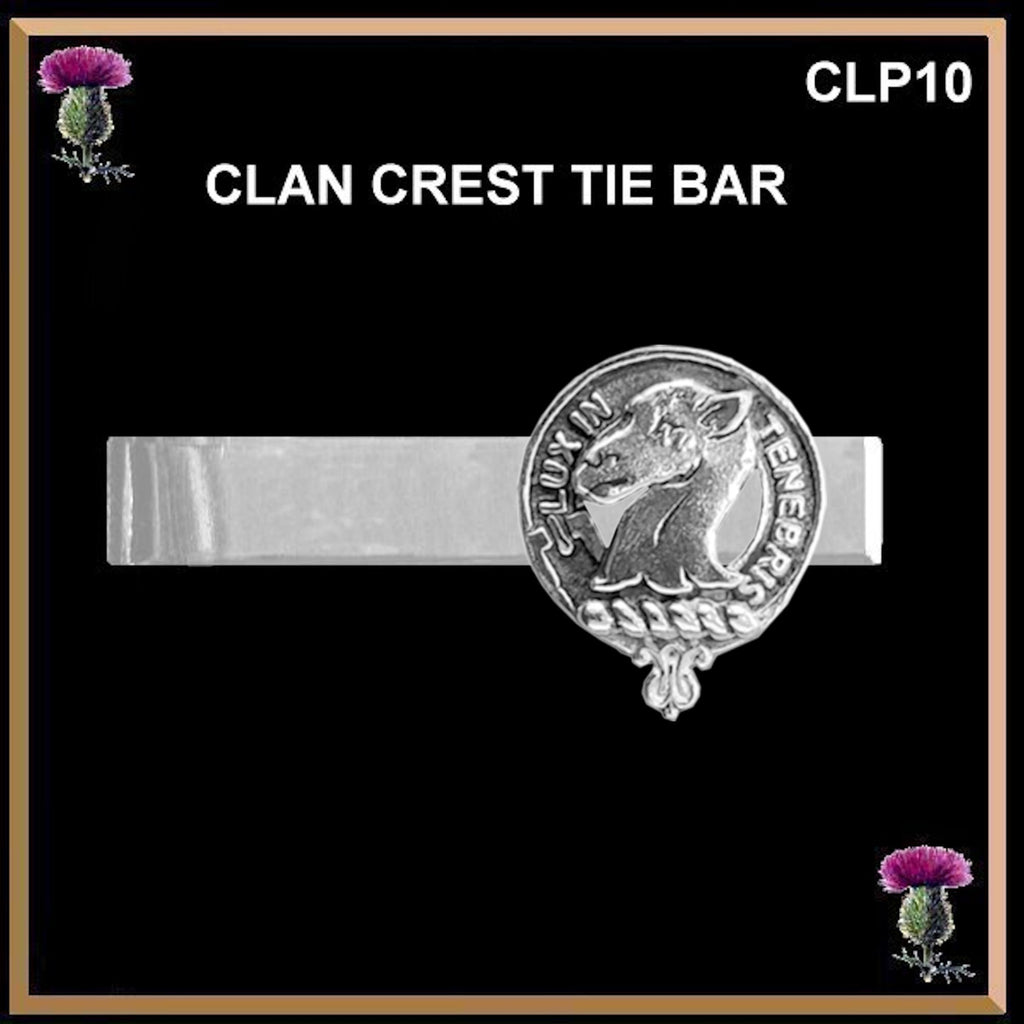 Your proud Scottish Clan heritage can be displayed by wearing your beautiful Scottish Clan clip tie bar. Each Clan tie bar is exquisitely handcrafted in high detail in lead free pewter or sterling silver and is mounted on a base metal tie bar. The Clan clip tie bar crest is 19.5 mm.