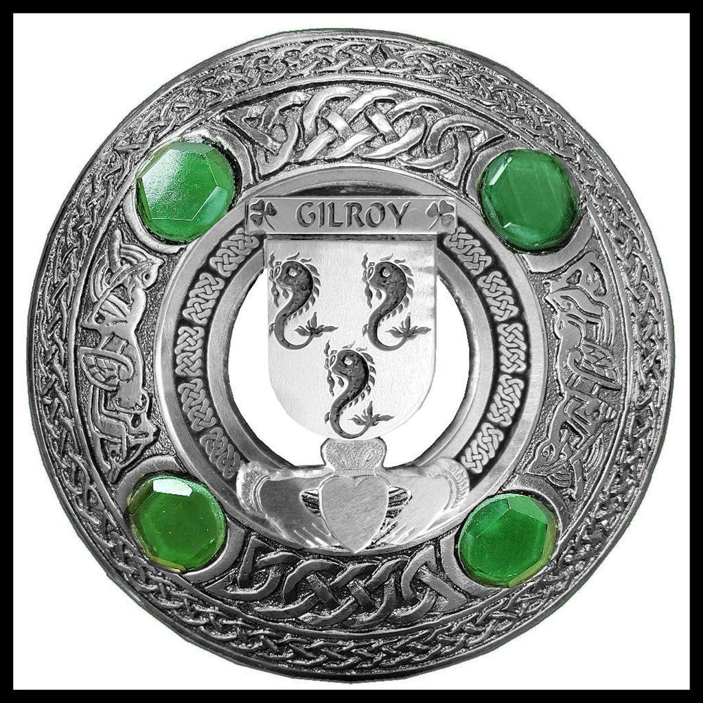 Gilroy Irish Claddagh Coat of Arms Plaid brooch ~ Emerald stones